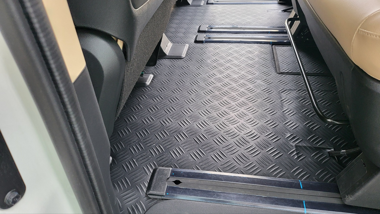 타고 내릴 때 가장 많이 밝게 되는 부분에 위 사진 처럼 실버 색상의 커버를 부착하면 흙먼지 묻은게 티가 덜 날것 같다. 아래 사진 . 차량 기본 출고 상태. 구입처 유투카 스타리아 튜닝 도어스