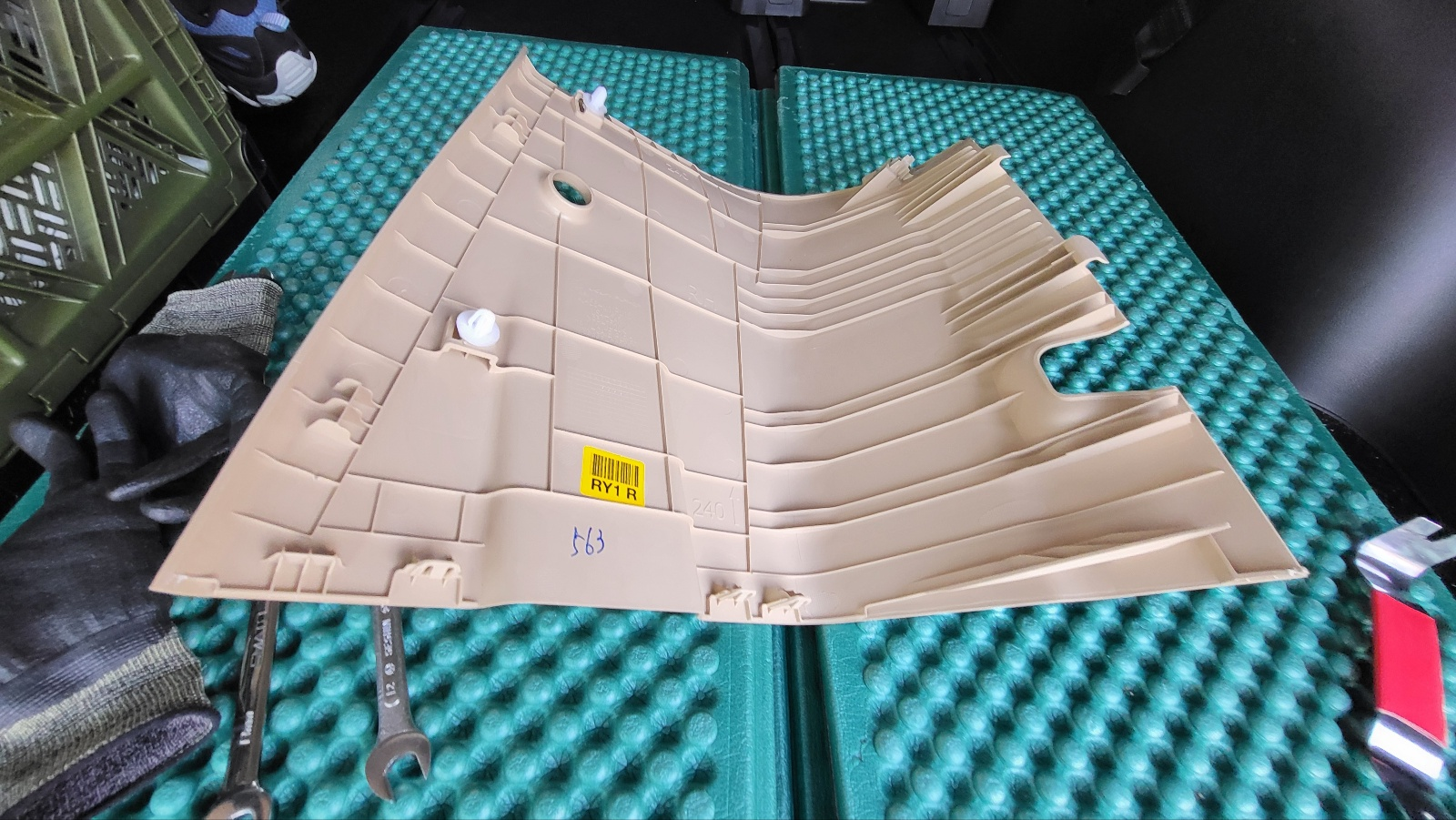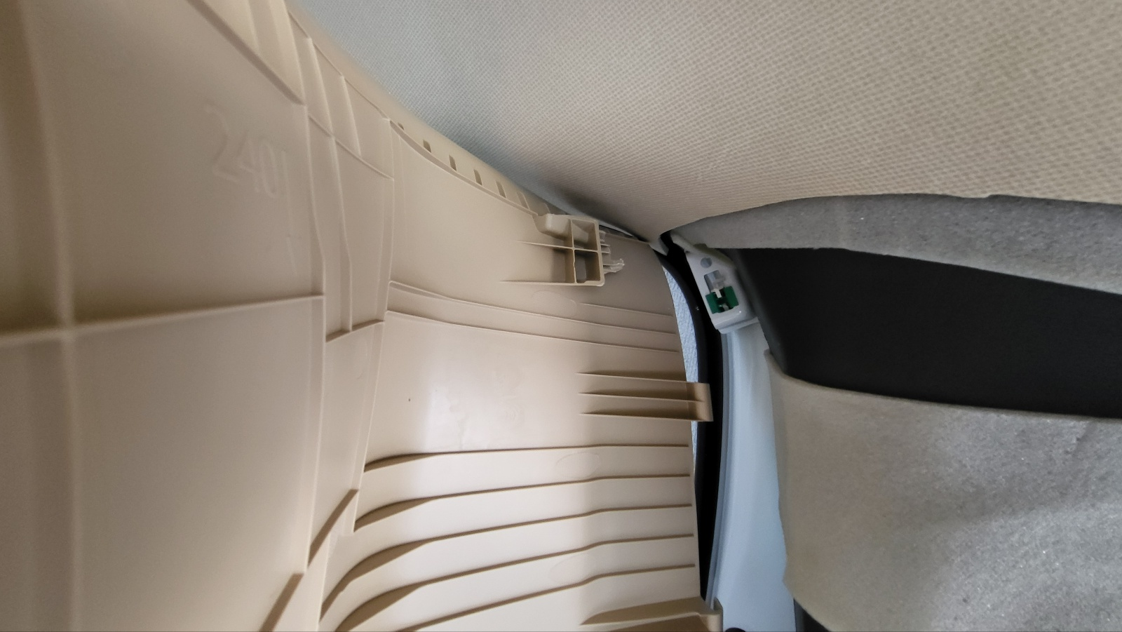 아래사진 . 앞 부분 탈거시 상단에 있는 녹색 클립은 안빠졌고 트림의 클립 지지 부위 파손되었음.