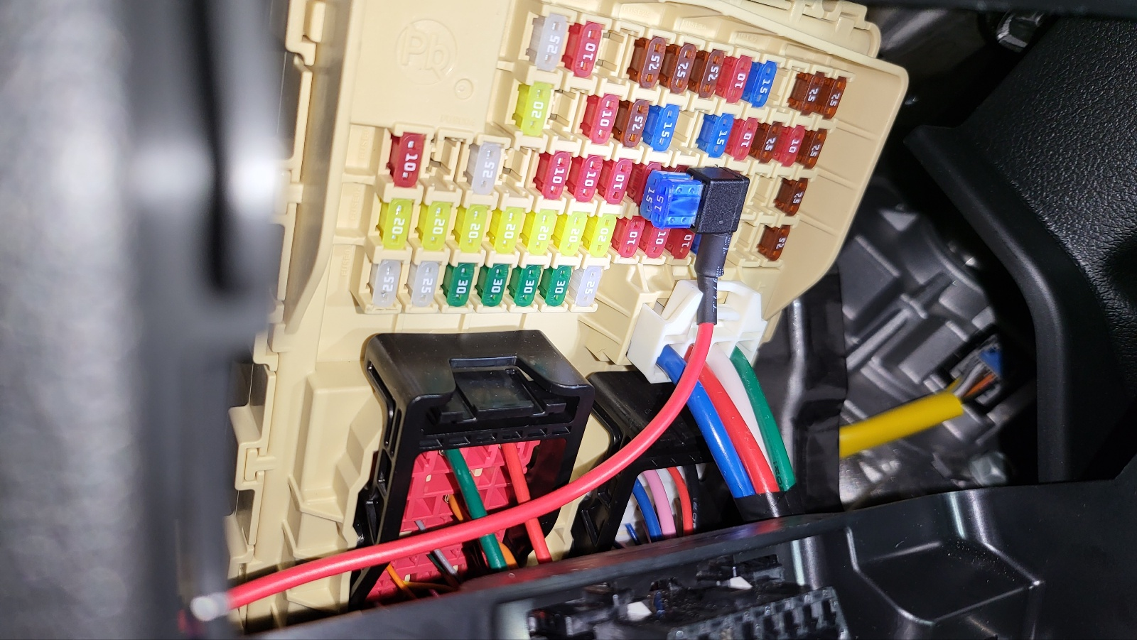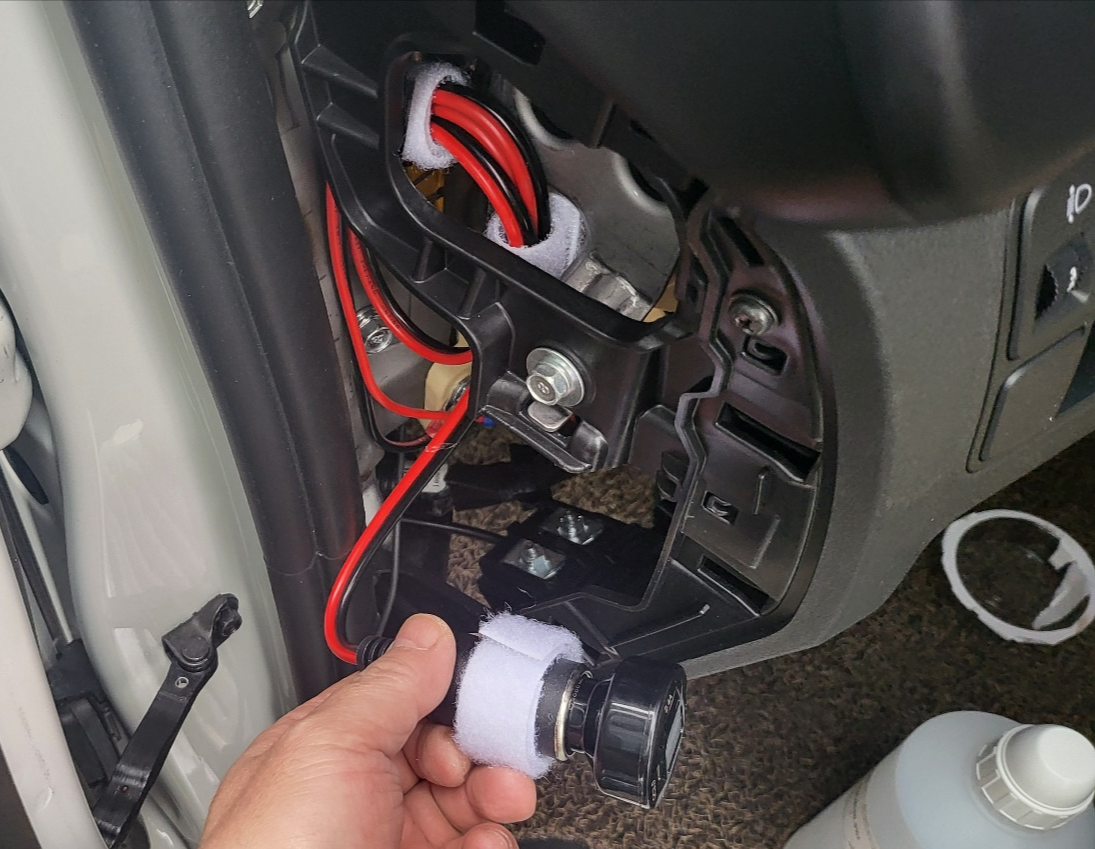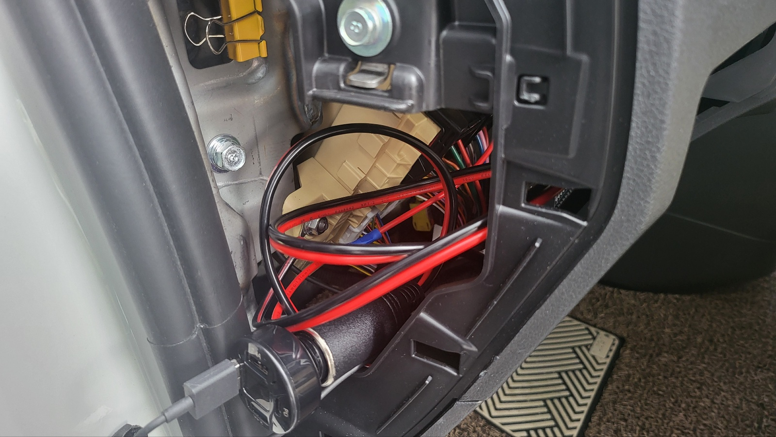 차량 휴즈 박스 내에 시거 소켓 매립하여 기기 전원 공급선들 최대한 안 보이게 처리하려고 함.