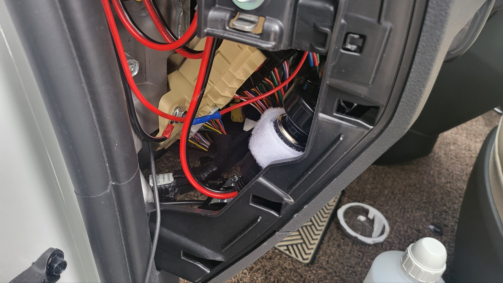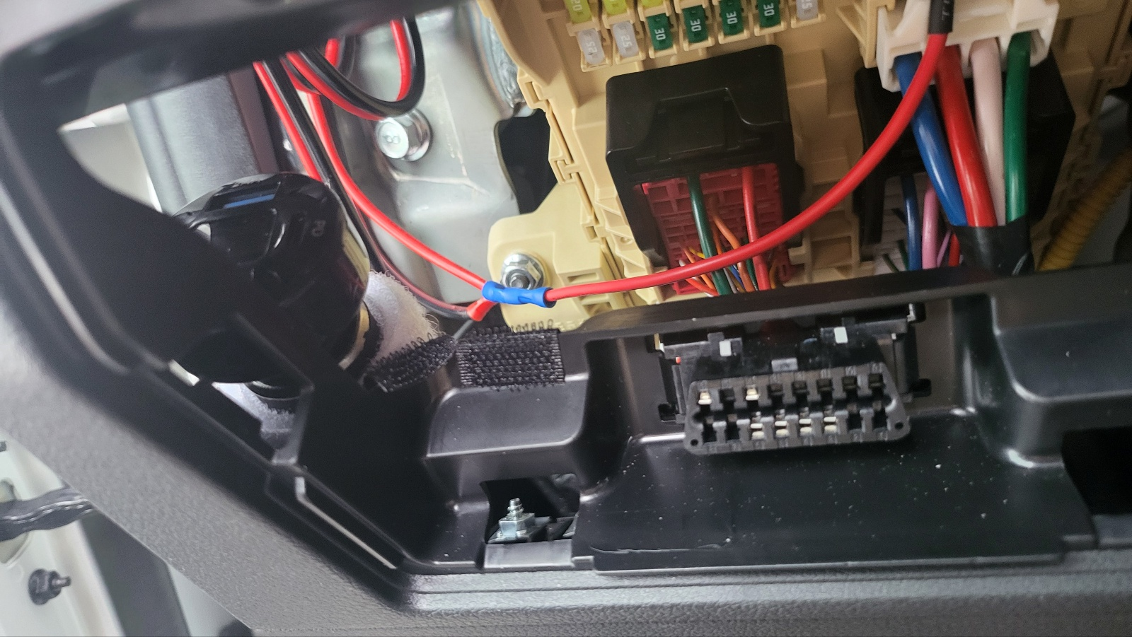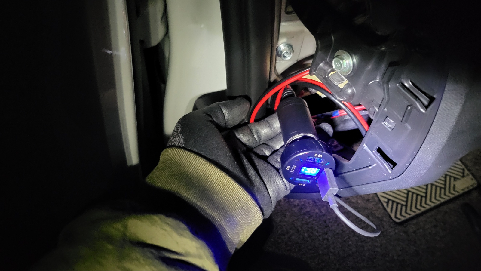 차량 휴즈 박스 내에 시거 소켓 매립하여 기기 전원 공급선들 최대한 안 보이게 처리하려고 함.