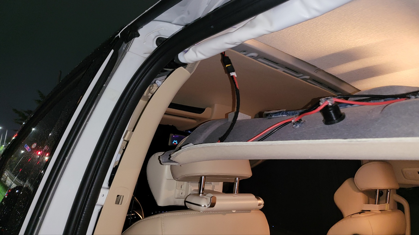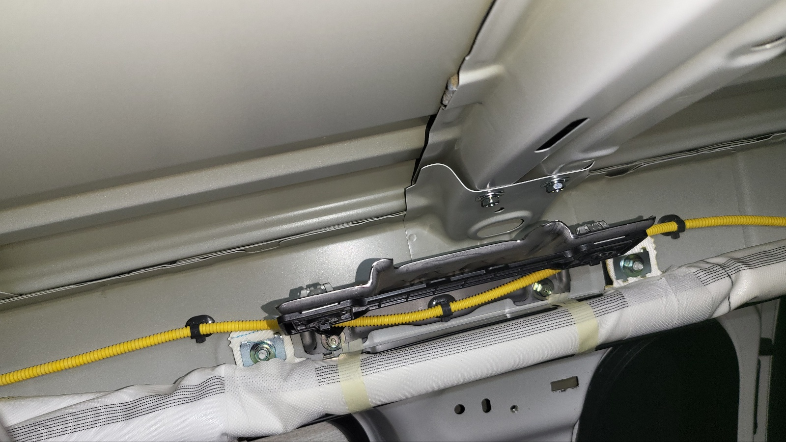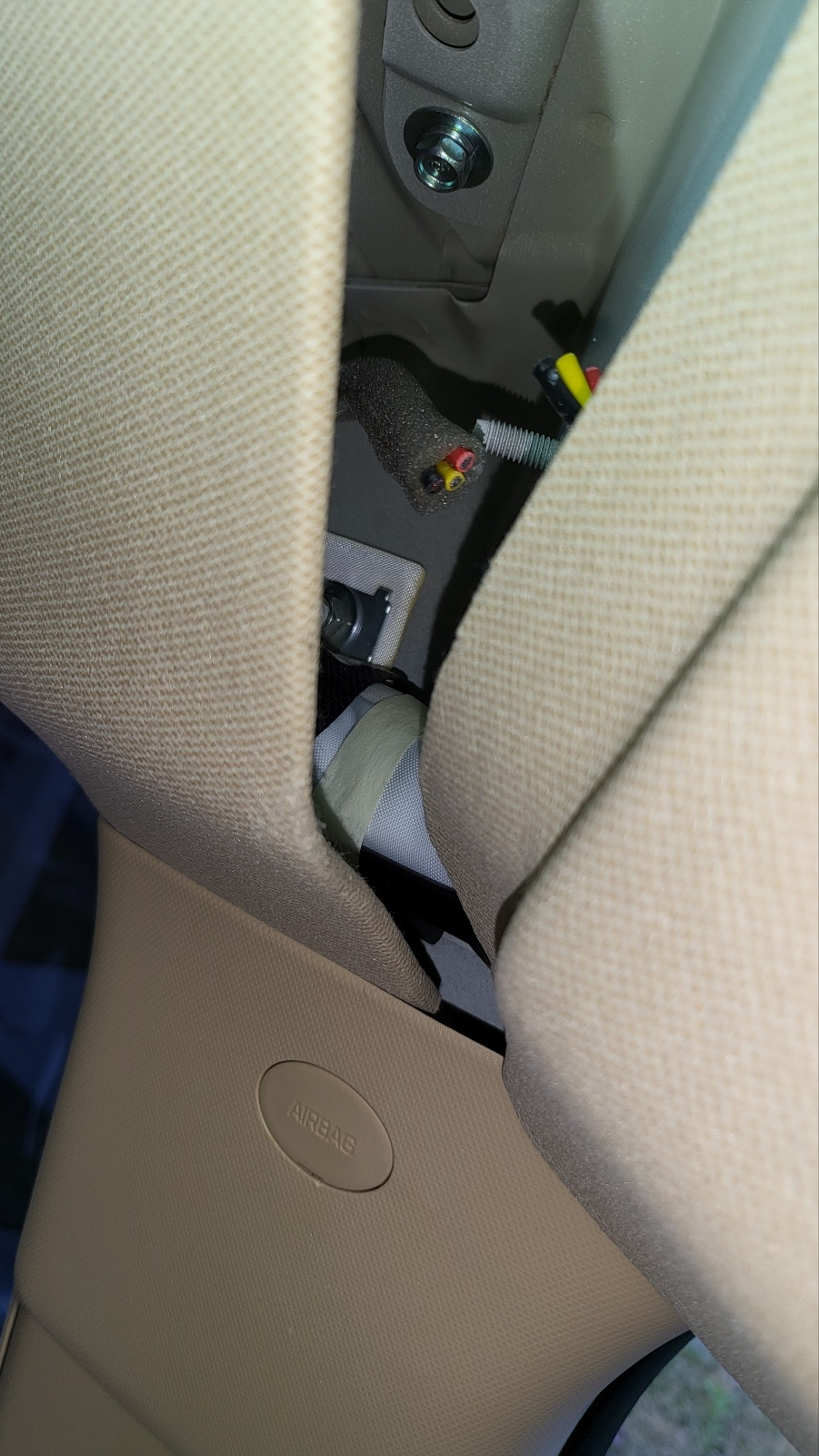 아래사진 : 차량 조수석 위 트림 경계부위에서 보이는 안테나 전선.