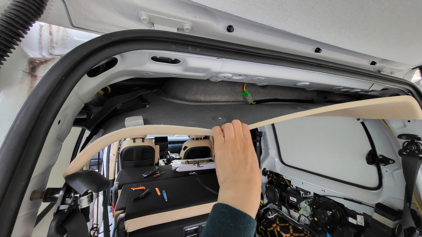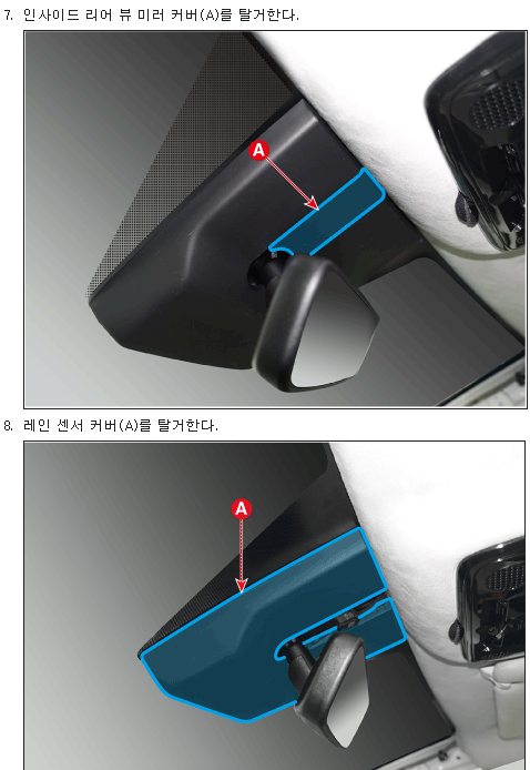 투어러 차종에서는 앞부분에 있는 천장 수납부도 탈거해야 한다.