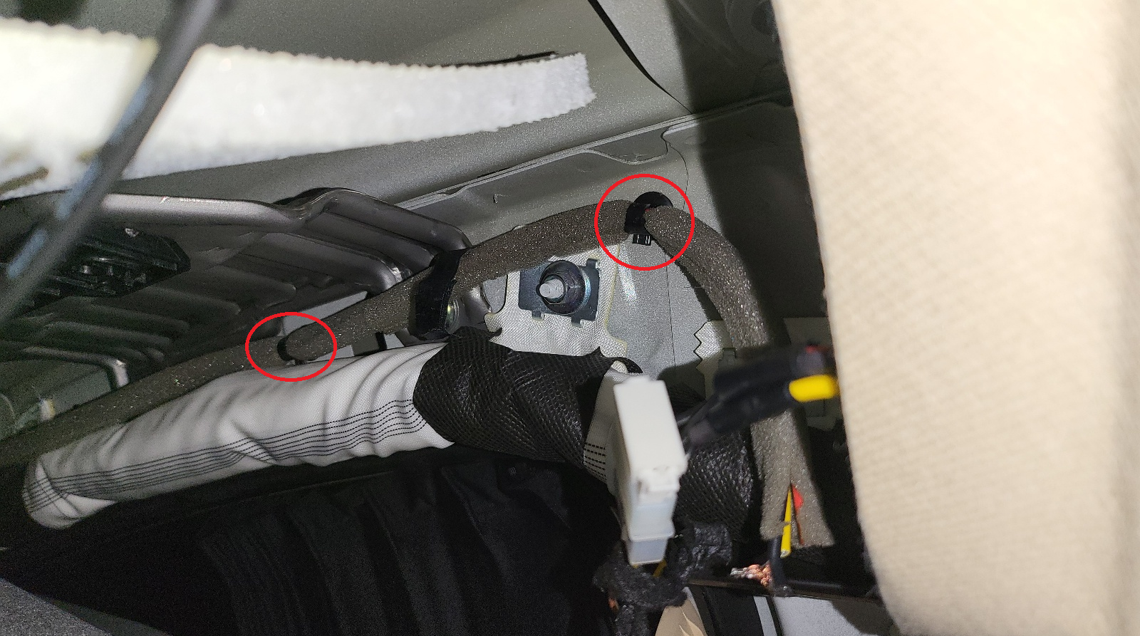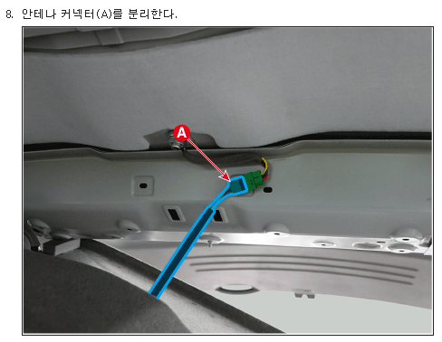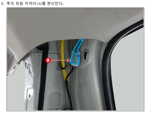 차체에 부착되어있는 타이(아래 사진의 붉은 원) 제거하고 A 필러에 있는 커넥터를 분리해야함.