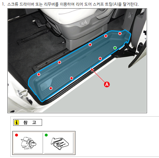 뒷문 스커프 트림 탈거 상세