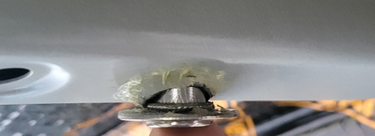 - 아래 사진은 차량 프레임 철판에 M8 팝너트 장착 한 것인데 (방법 상세 : https://igotit.tistory.com/5401), 볼트에 연결된 하중이 무거운 경우 (예 : 50kg 이상 ) 볼트나 팝너트 자체는 충분히 강도가 높아서 100kg 이상 도 견딜 수 있지만, 가장 약한 지점은 차량 철판이다. 철판이 얇아서 팝너트 장착된 홀 인접부 부터 철판이 휘어지면서 팝너트 빠져버린다. 비유하자면 이는 튼튼한데 잇몸이 부실..
