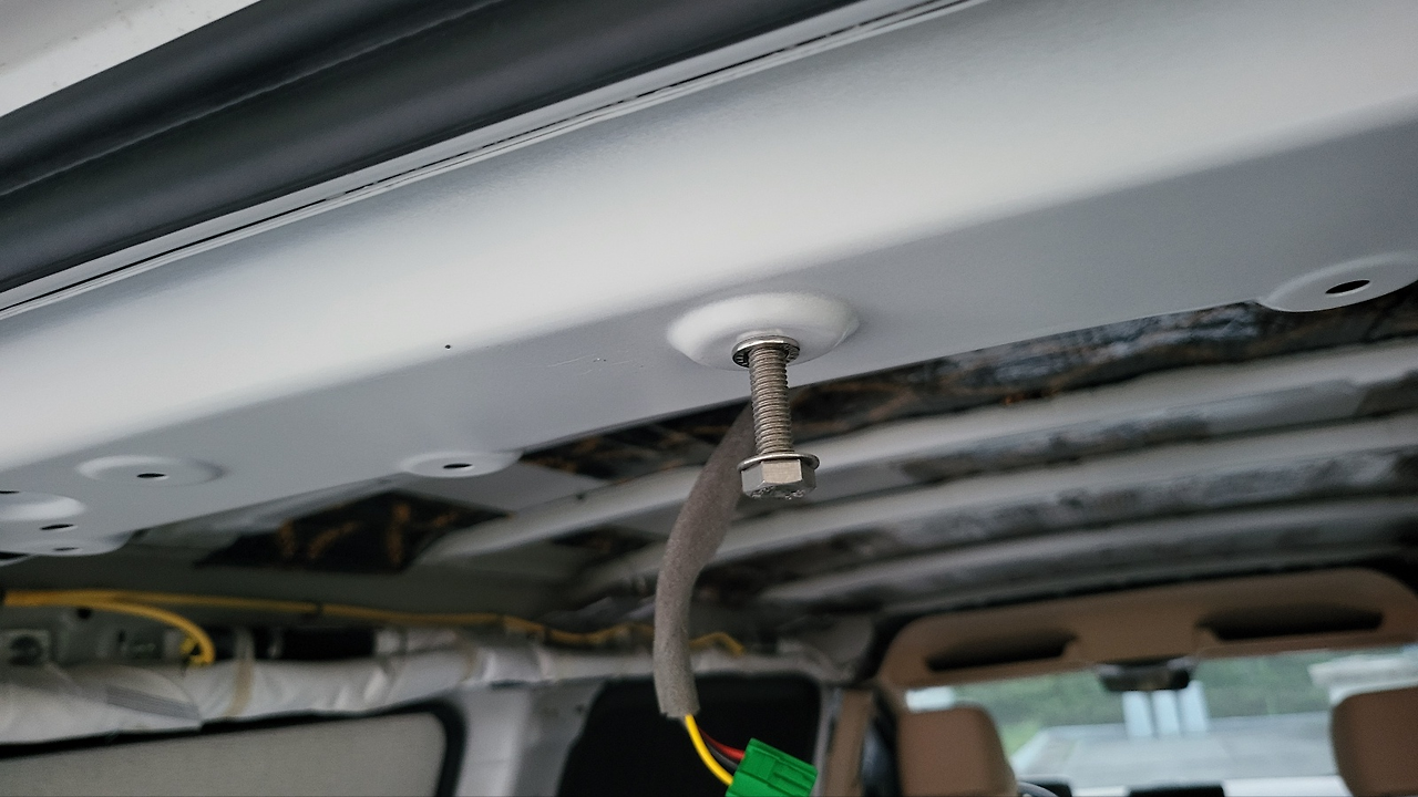 - M8 잭너트에 와셔 끼운것을 리벳건 으로 차량 프레임에 장착