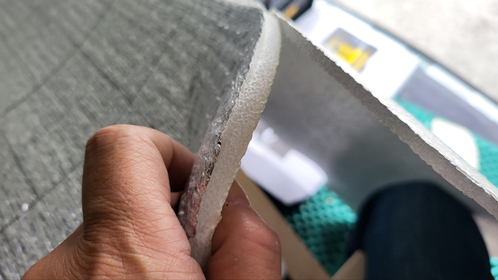 - 원래 3열에 부착했던 10mm 단열 벽지를 목재 브라켓 위에 덮어서 끼울려고 했으나....