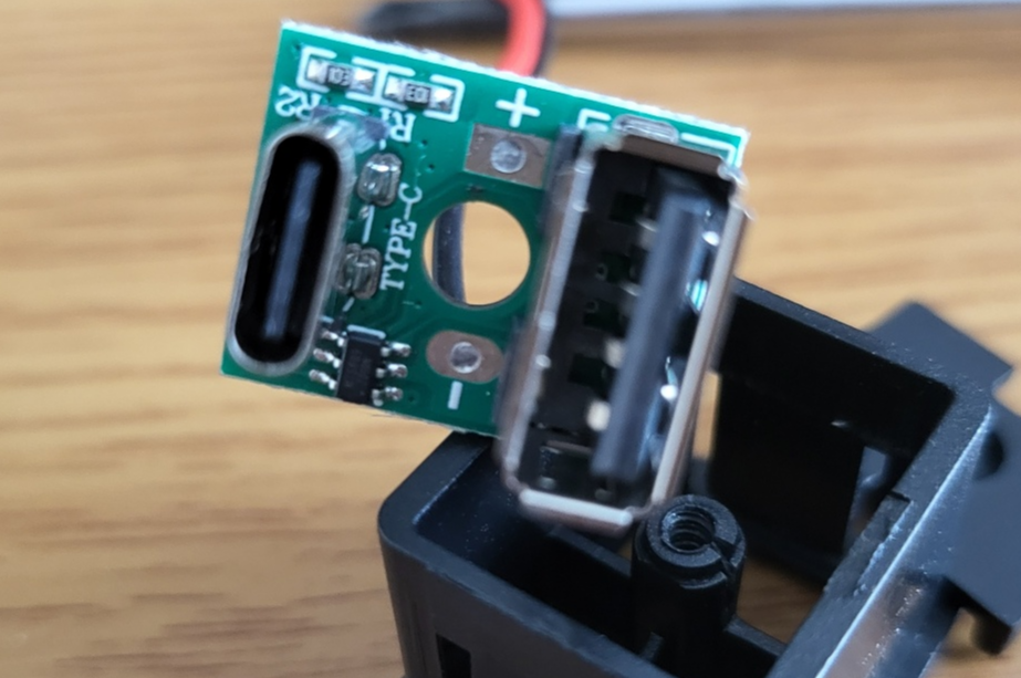 - 전선 +, - 는 USB A 의 전원 핀으로 직결.