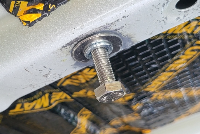 얇은 철판에 팝너트 장착시 문제 상황 - 아래 사진은 차량 프레임 철판에 M8 팝너트 장착 한 것인데 (방법 상세 : https://igotit.tistory.com/5401), 볼트에 연결된 하중이 무거운 경우 (예 : 50kg 이상 )