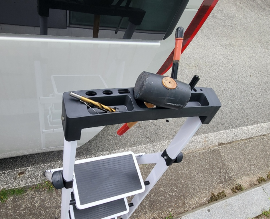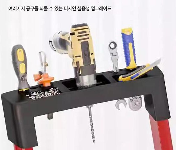 장점. 사다리 위에 자잘한 물품들 올려 둘 수 있다.