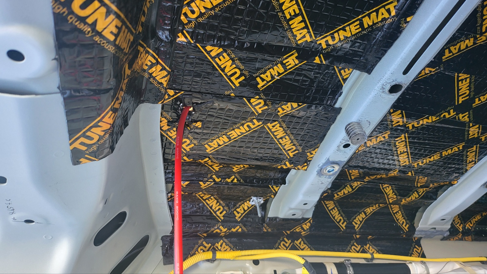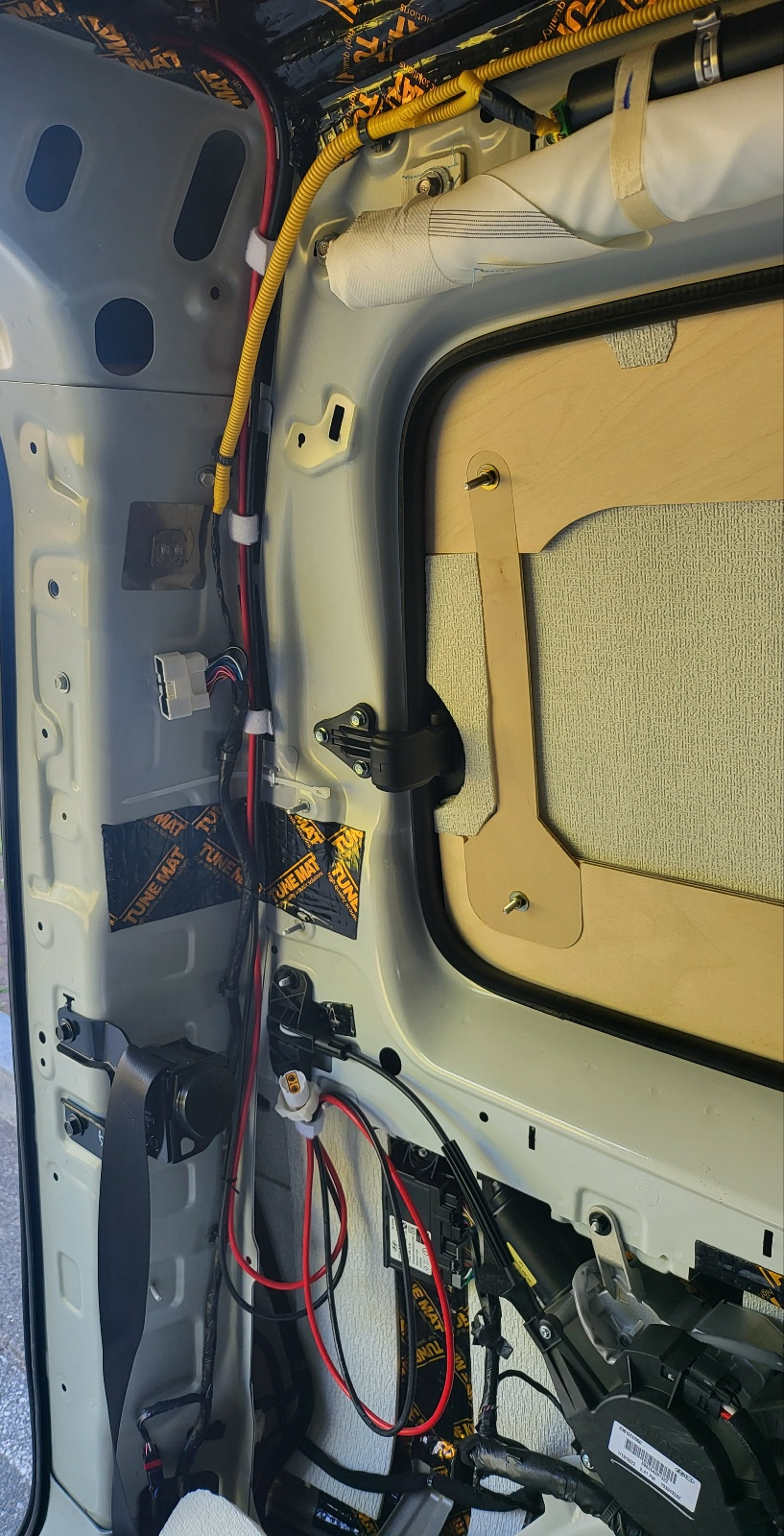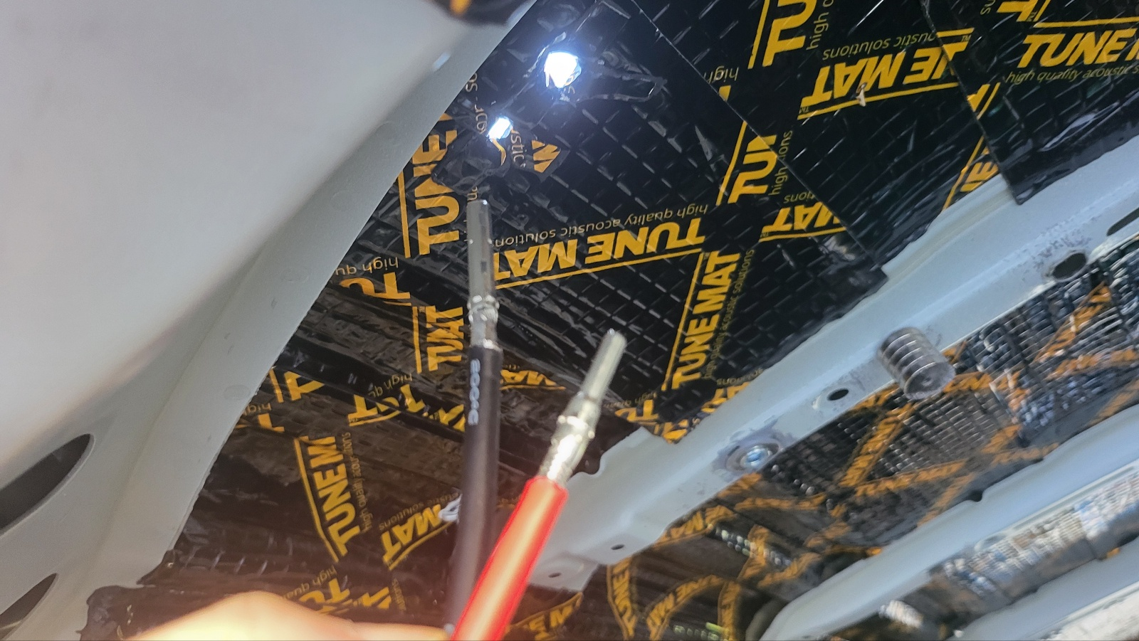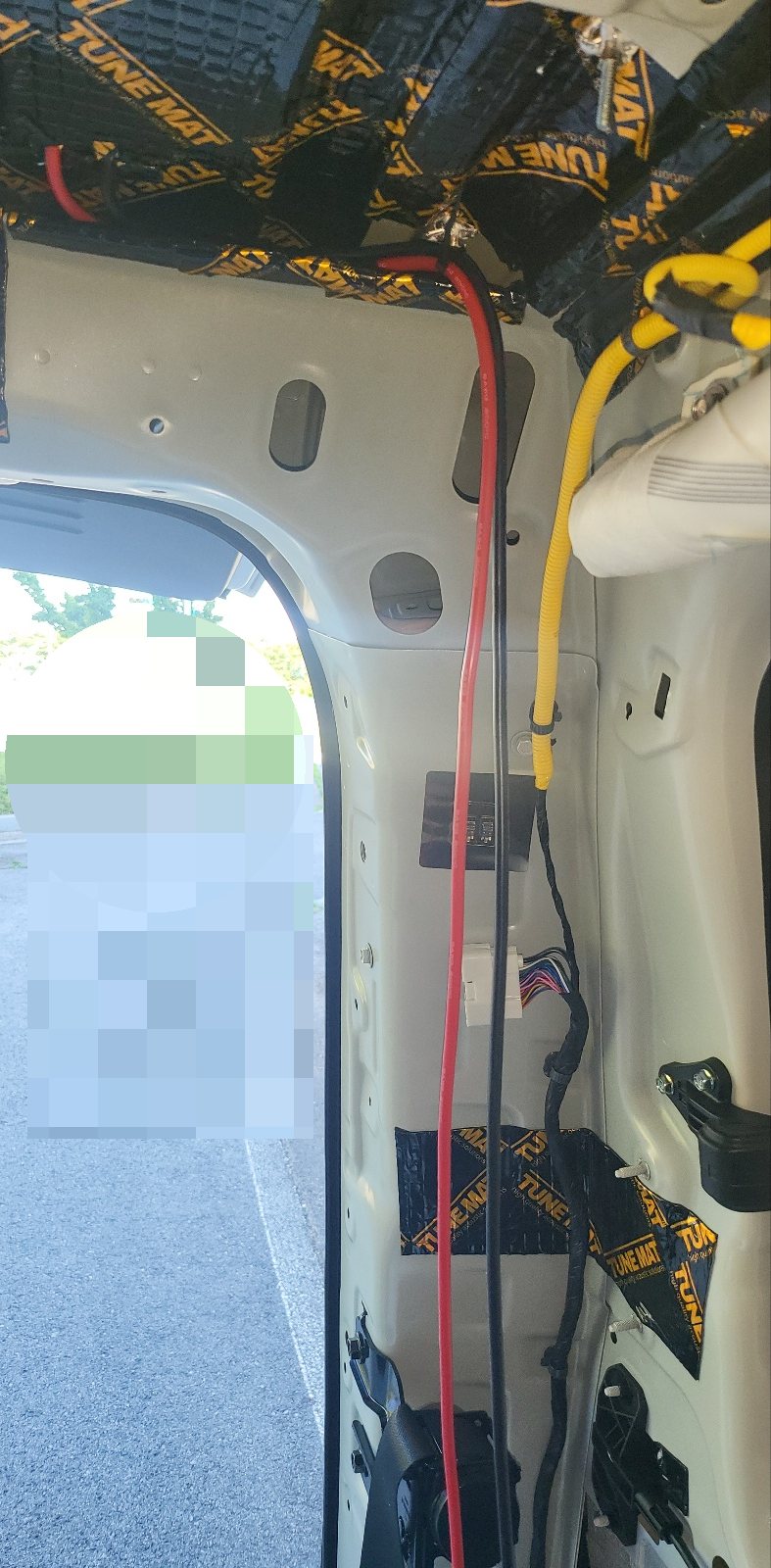 전선이 금속의 모서리 부분과 만날 가능성 있는 모서리 부분 모두에 방진매트 부착해둠. 차량 주행중 진동, 흔들림 에 의하여 날카로운 모서리에 전선 피복이 반복적으로 쓸리다보면 피복이 잘려서 차체 금속과 전선 내부 도체 접촉 발생할 가능성 있는 위험 지점이므로 안전 조치 취하는 것.