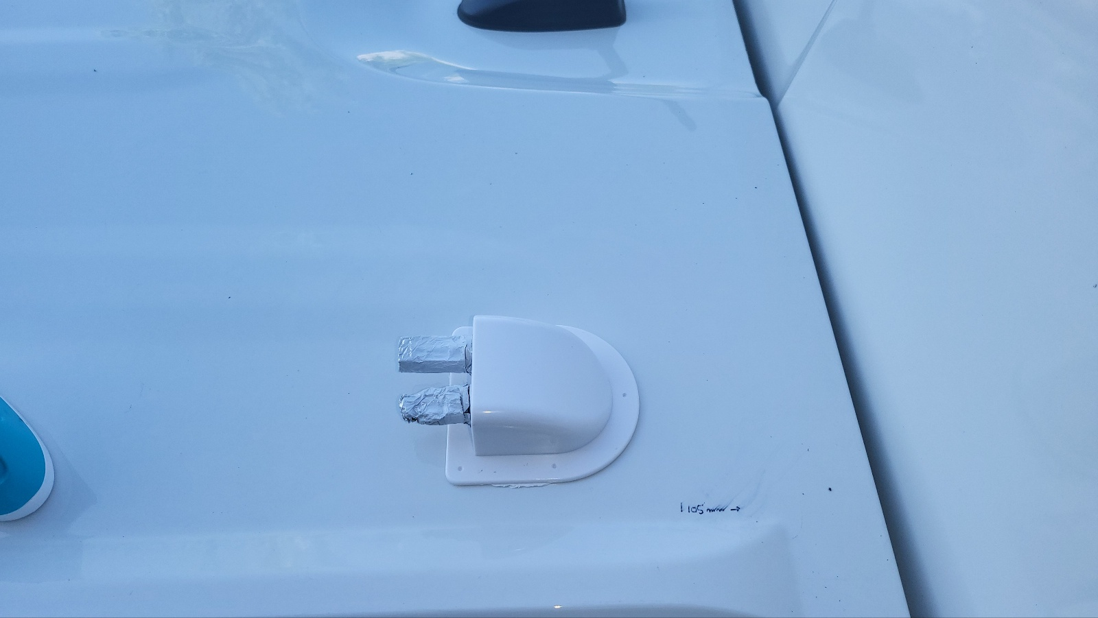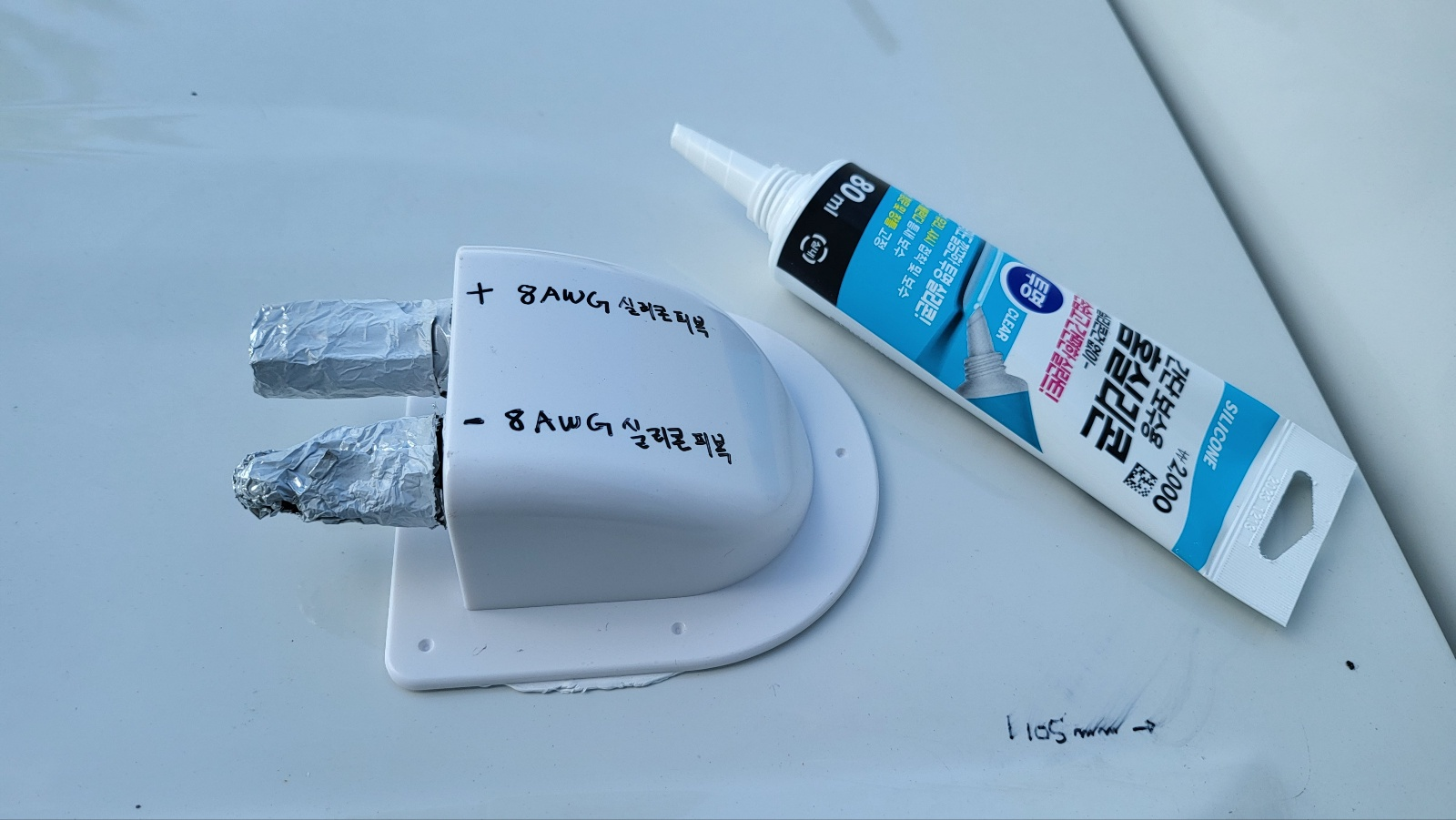 이제 차량 내부에서 MC4 단자에 납땜 처리된 전선을 저 구멍으로 넣어준다.