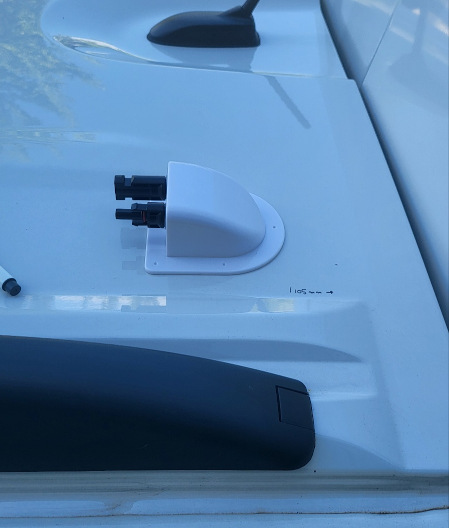 - MC4 커넥터 위치도 앞을 바라보게 하여 커넥터 연결한 전선들이 차량 후방에서 보이지 않으며, 측면에서는 이전에 장착 해둔 루프랙에 가려져서 제일 깔금.
