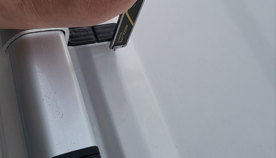 2. 차체에 낸 구멍으로 물 들어가지 못하도록 브라켓 하단에 양면접착 실리콘이 부착되어 있다(아래 사진).