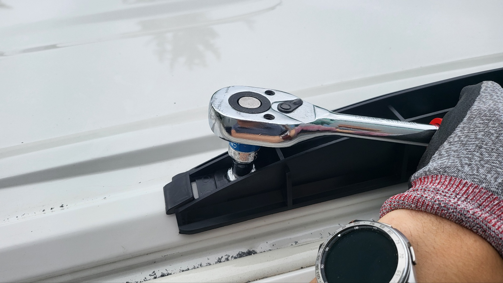 이제 지붕에서 라쳇렌치로 볼트 돌려주면 된다.