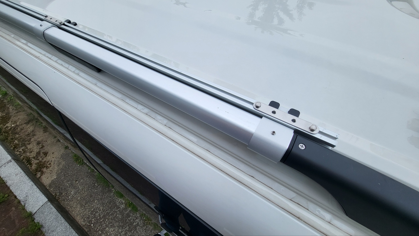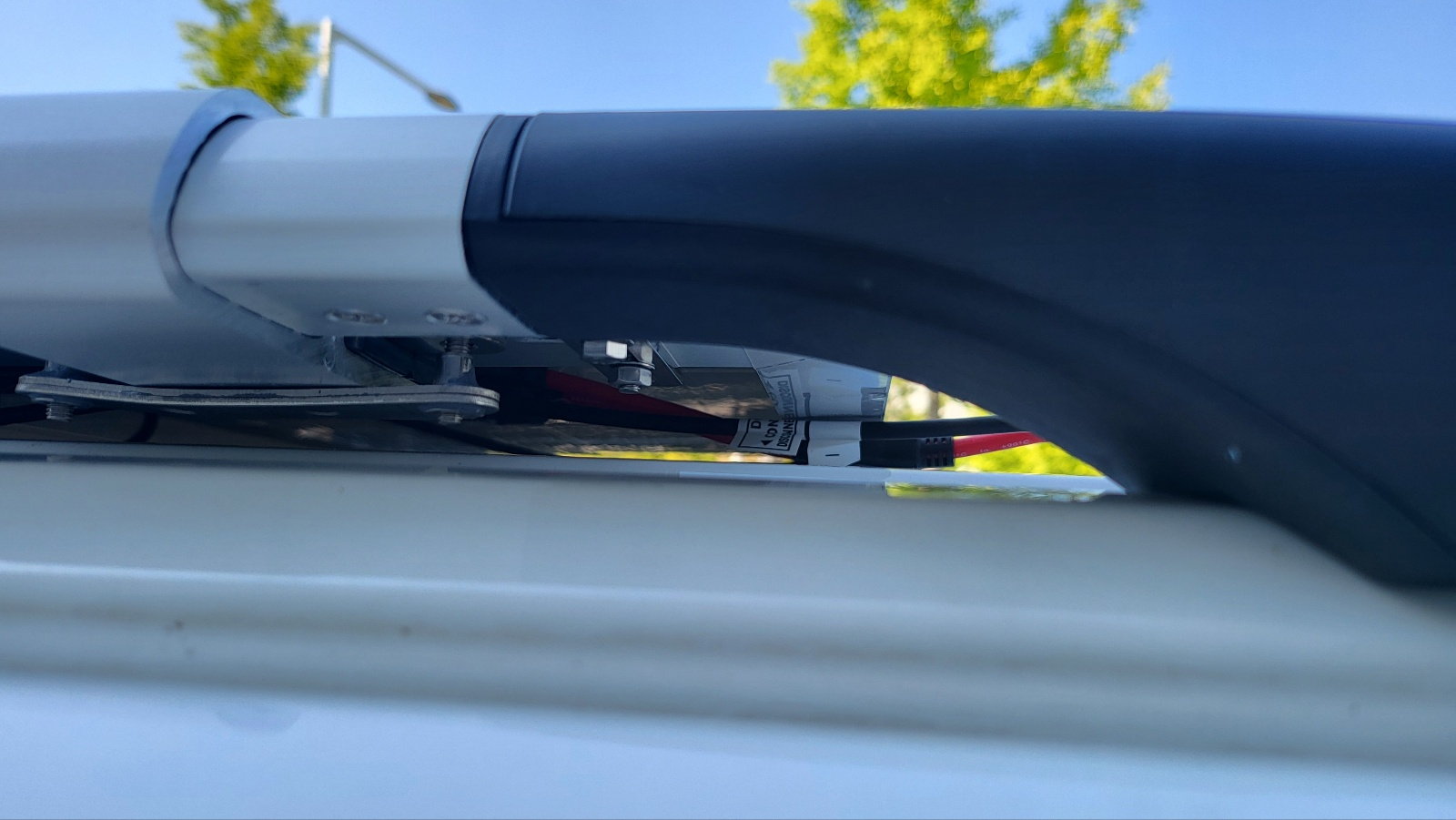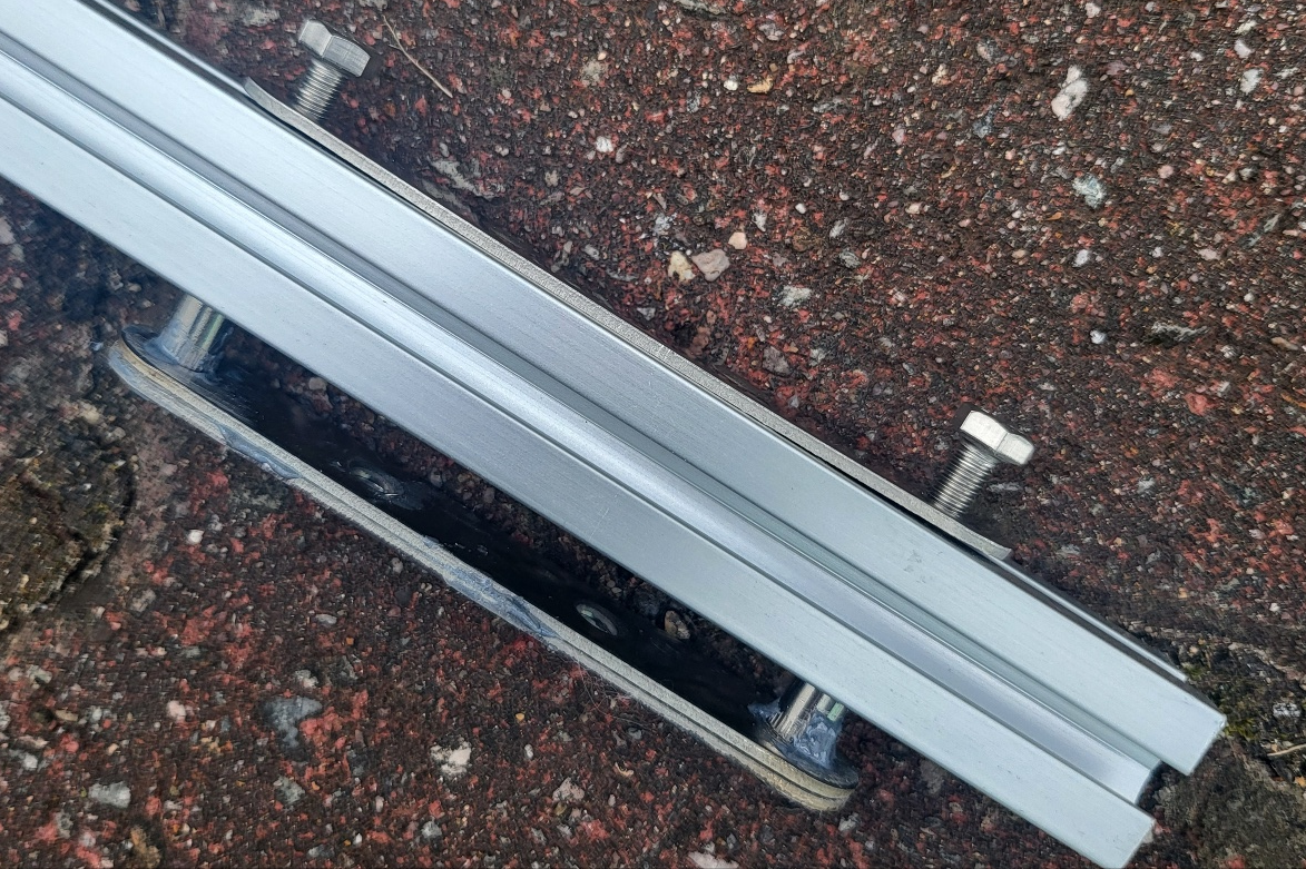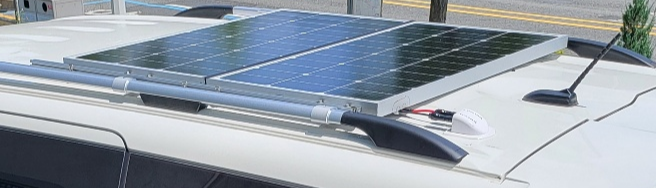 이전에 장착해뒀던 루프랙에 알루미늄 프로파일을 고정하는 방식. 태양광 패널은 알루미늄 프로파일에 고정.