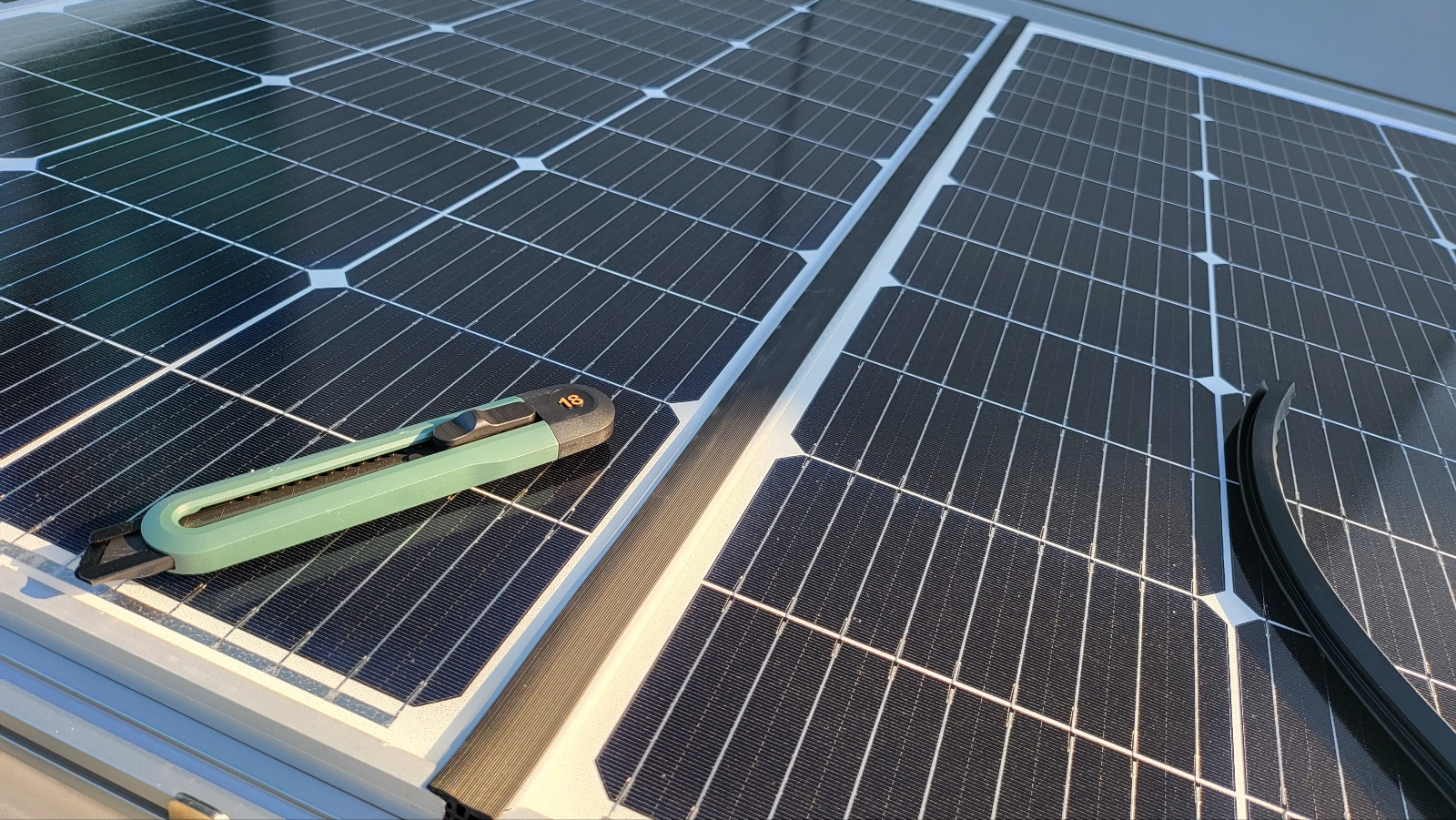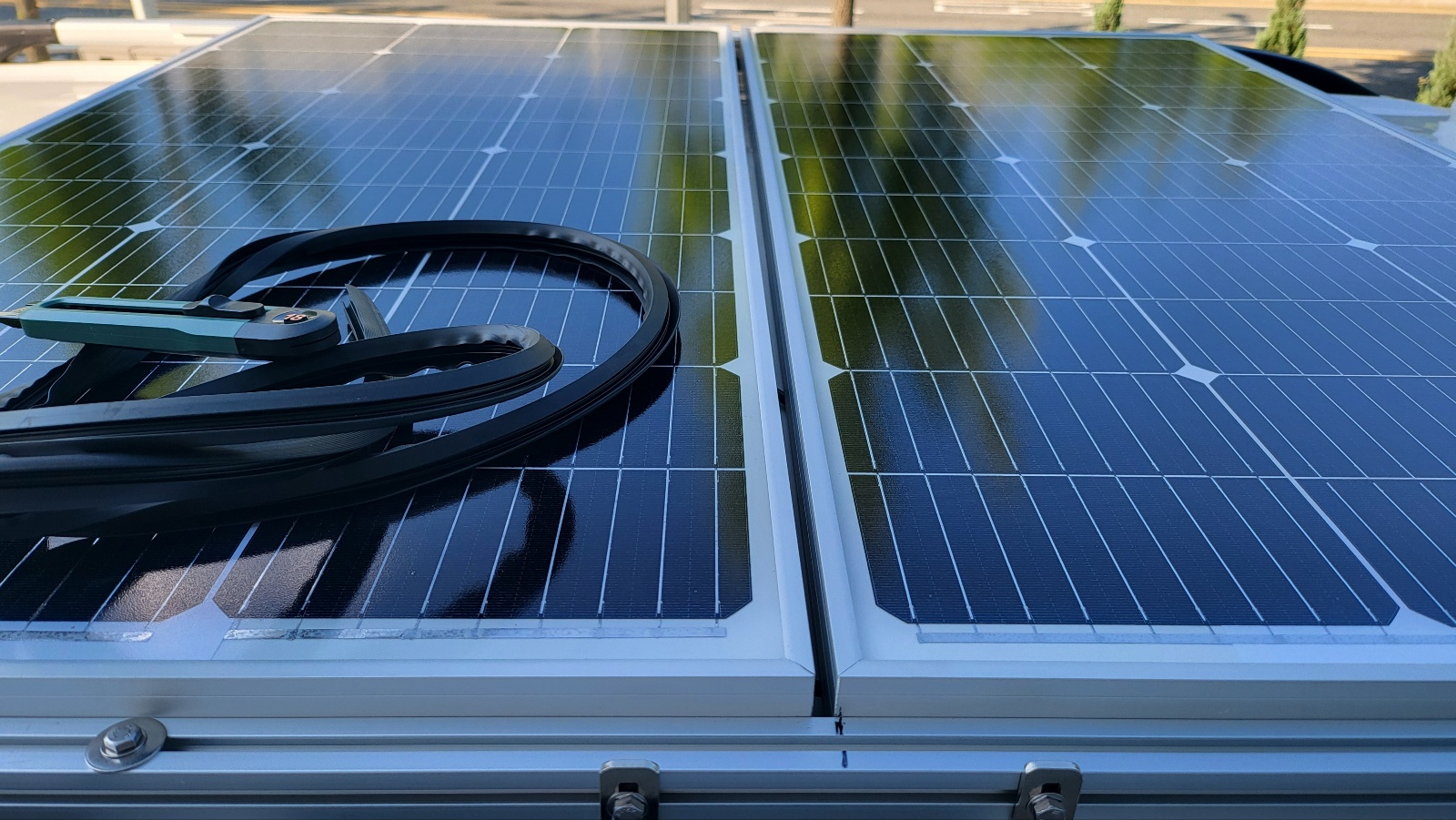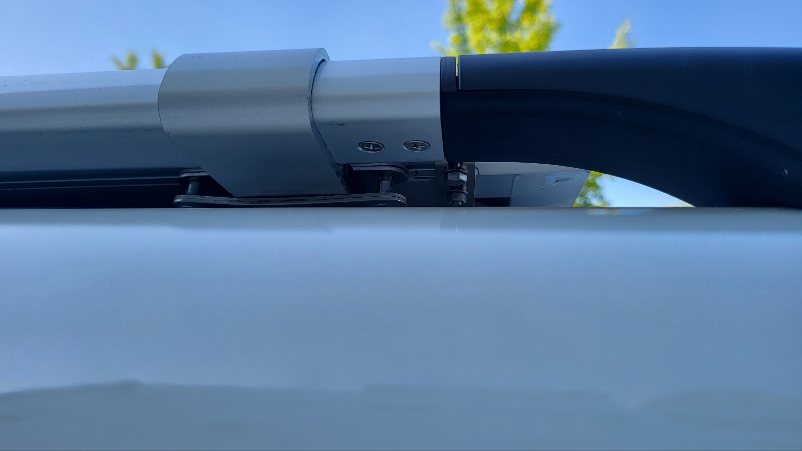 이전에 장착해뒀던 루프랙에 알루미늄 프로파일을 고정하는 방식. 태양광 패널은 알루미늄 프로파일에 고정.