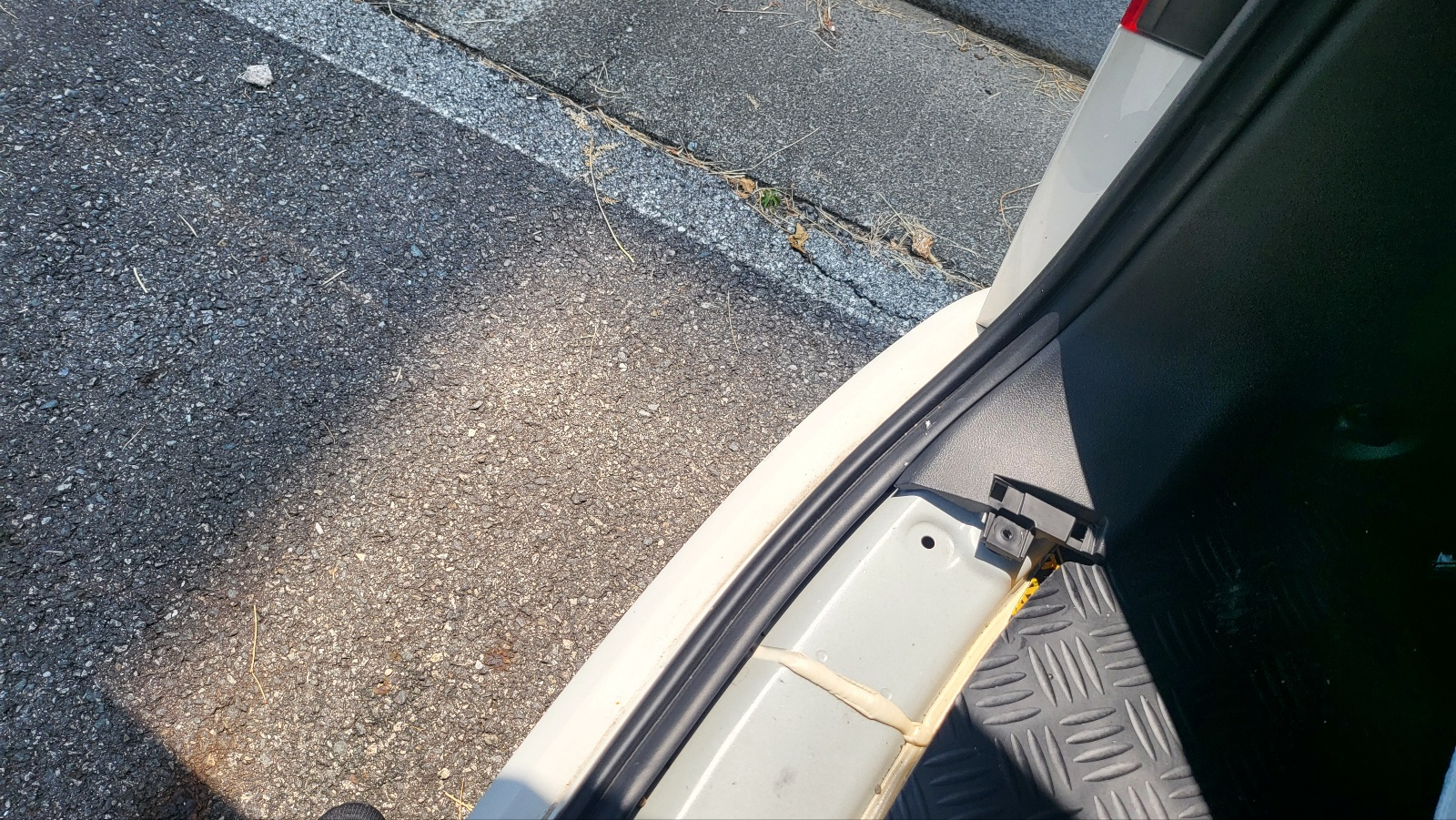 고무 몰딩(원래 용도는 차량 내부 대시보드와 앞유리 사이에 끼우는것) 으로 틈새 마감.