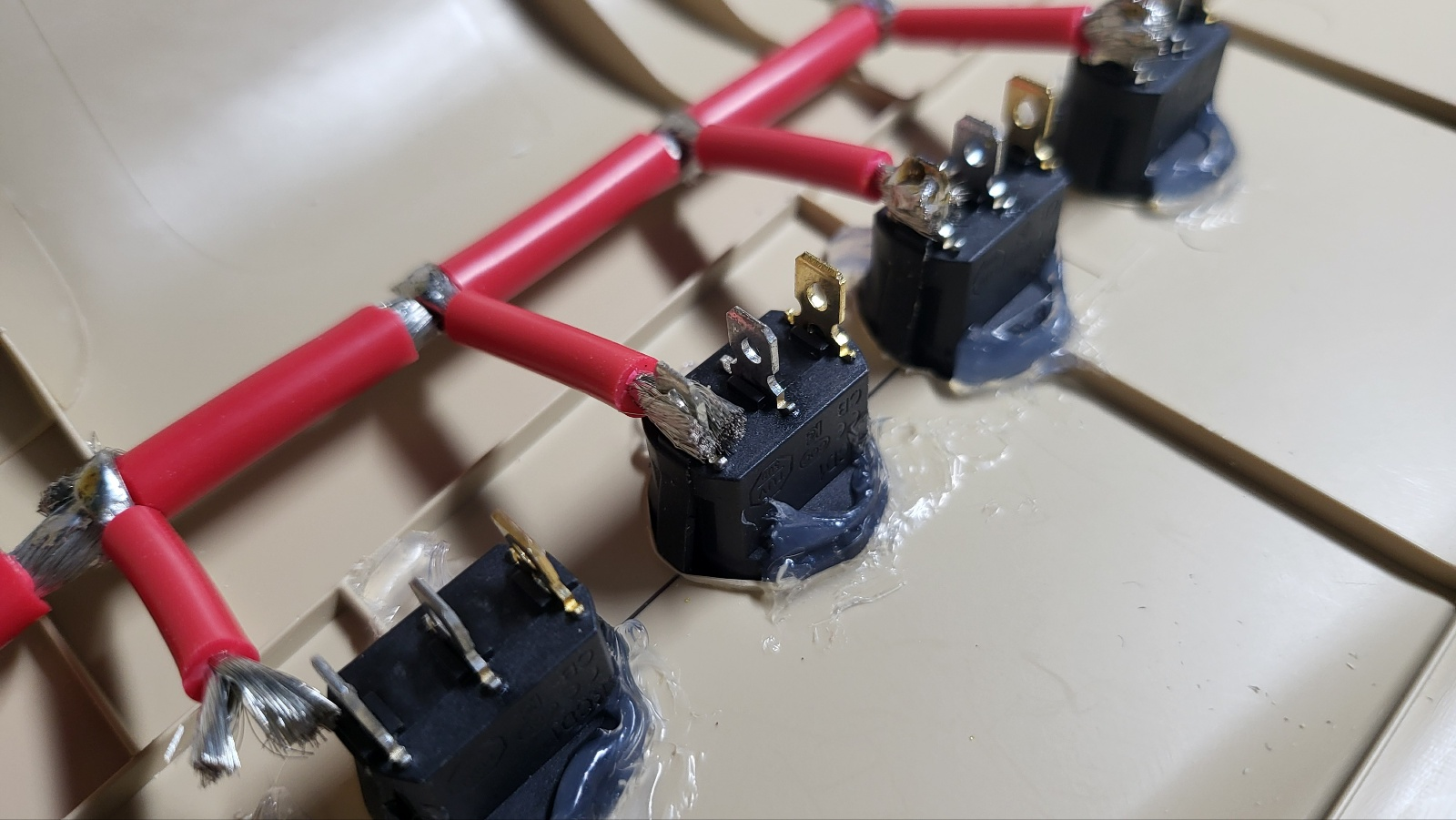 각각의 스위치로 연결하는 전선 . 실리콘 피복 전선 12AWG 빨간색