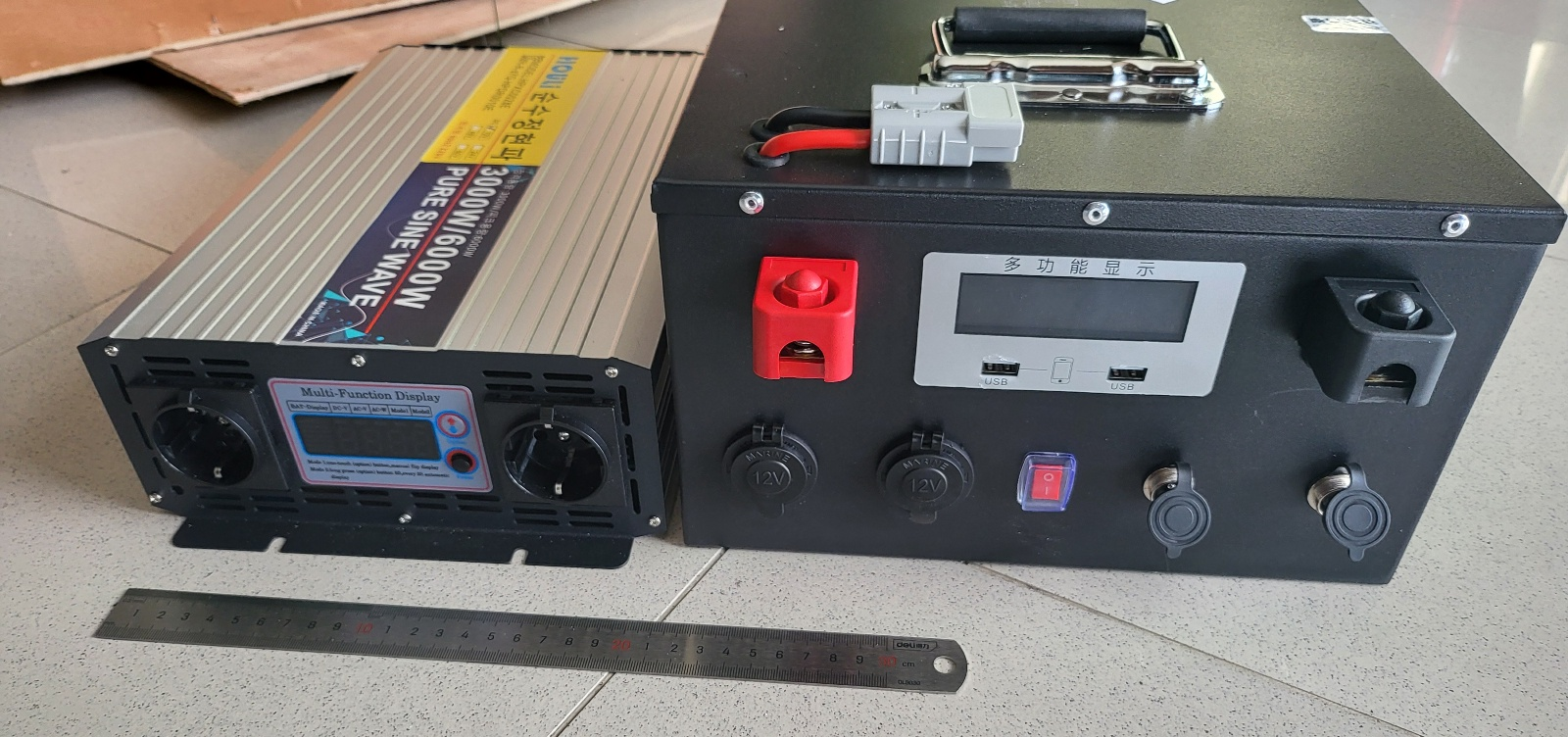 인버터와 인산철 배터리 사이 전선 연결 완료.