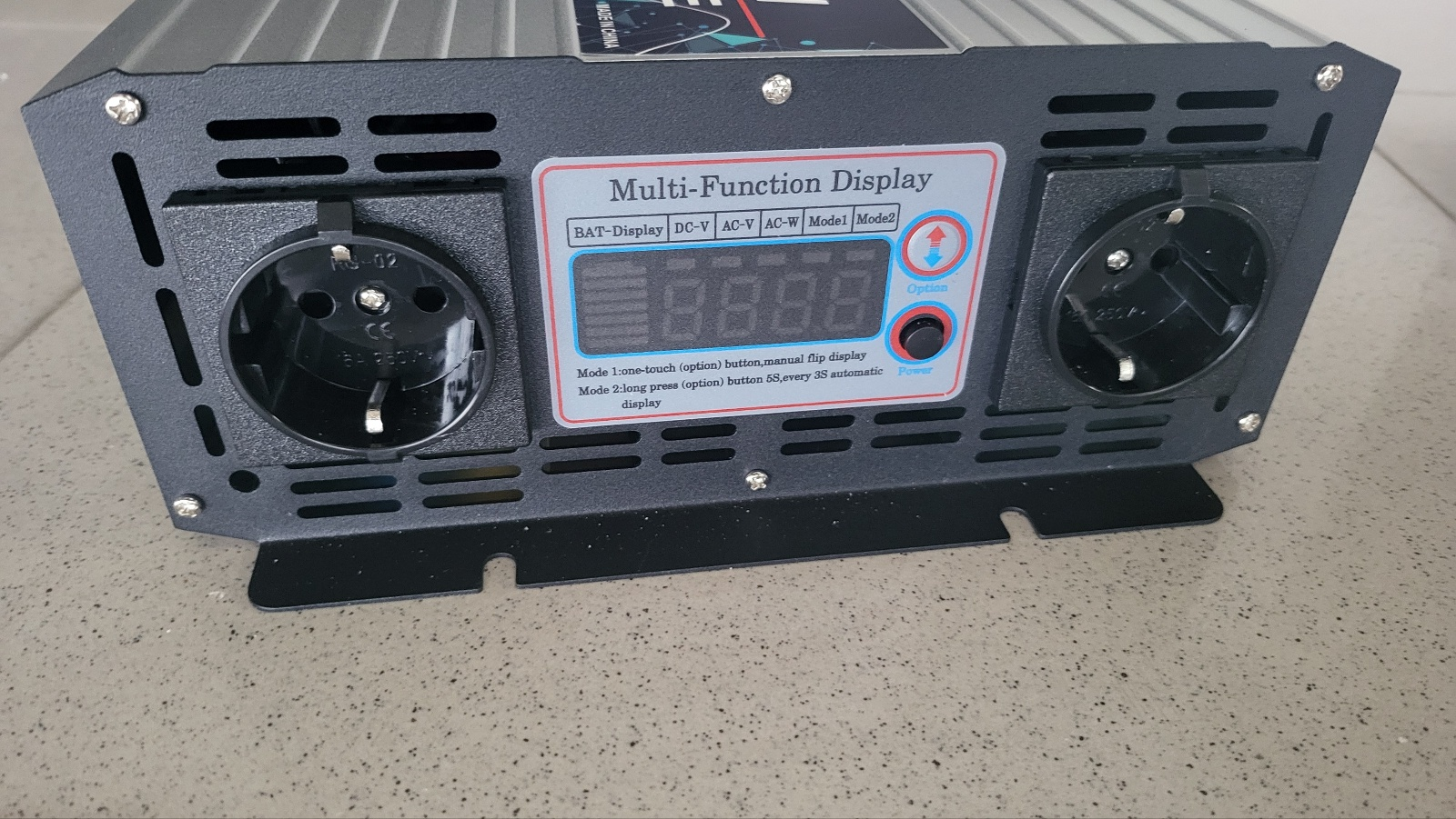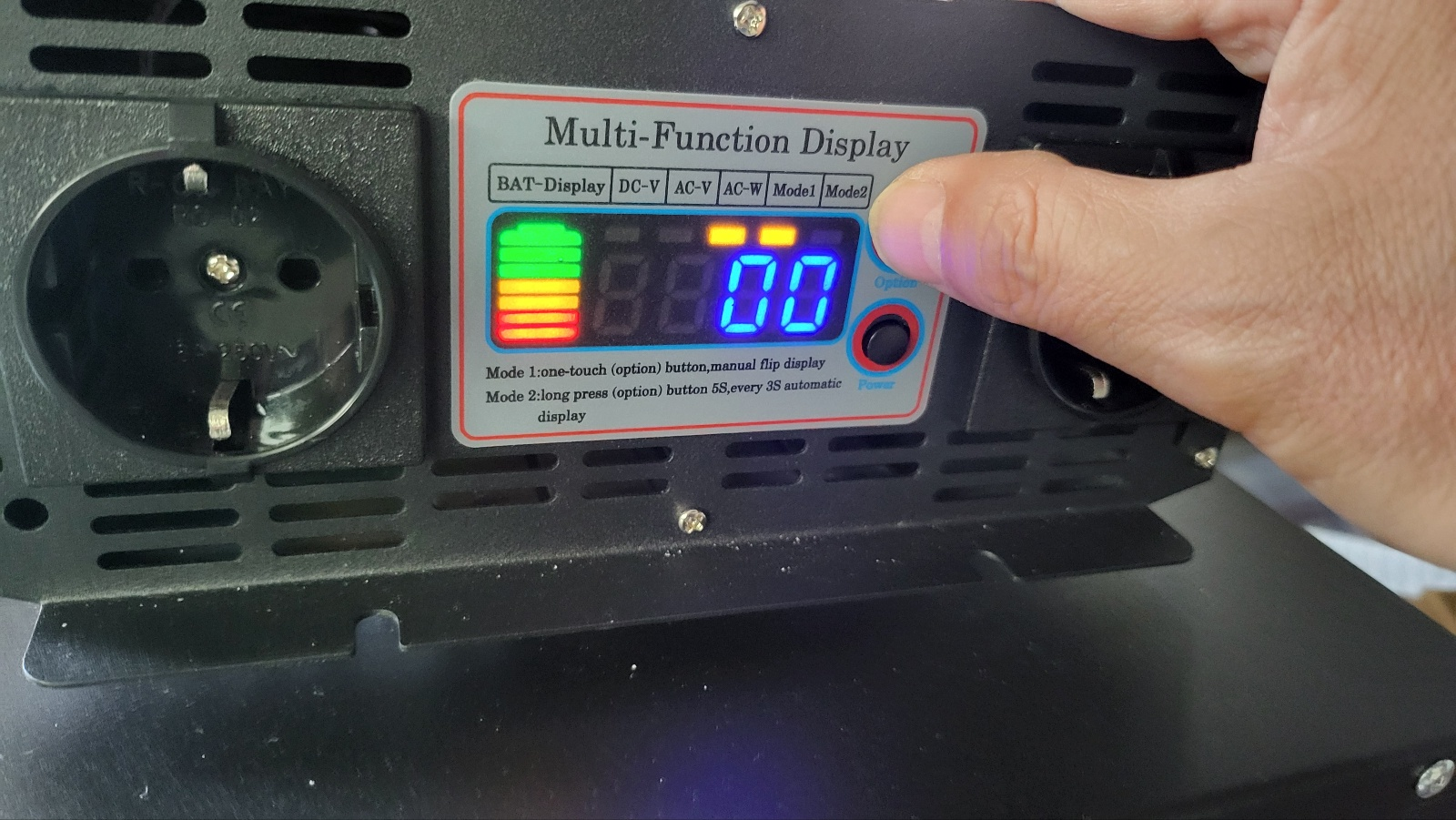 인버터 파워 온 (검정색 버튼 )하면 디스플레이에 출력 전압 값 (~220V)표시 된다.