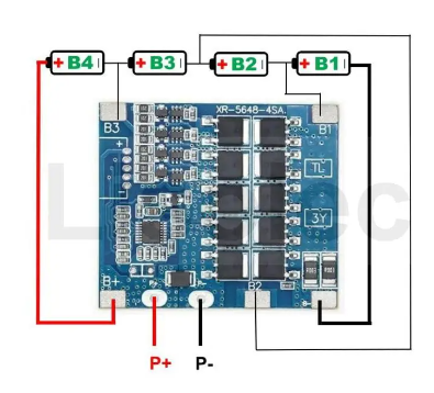 - 인산철 배터리 4개 직렬로 한 경우 BMS와의 결선.