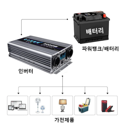 - 배터리 전압 (12V , 24V )입력 받아 220V , 60Hz 교류 전압 출력