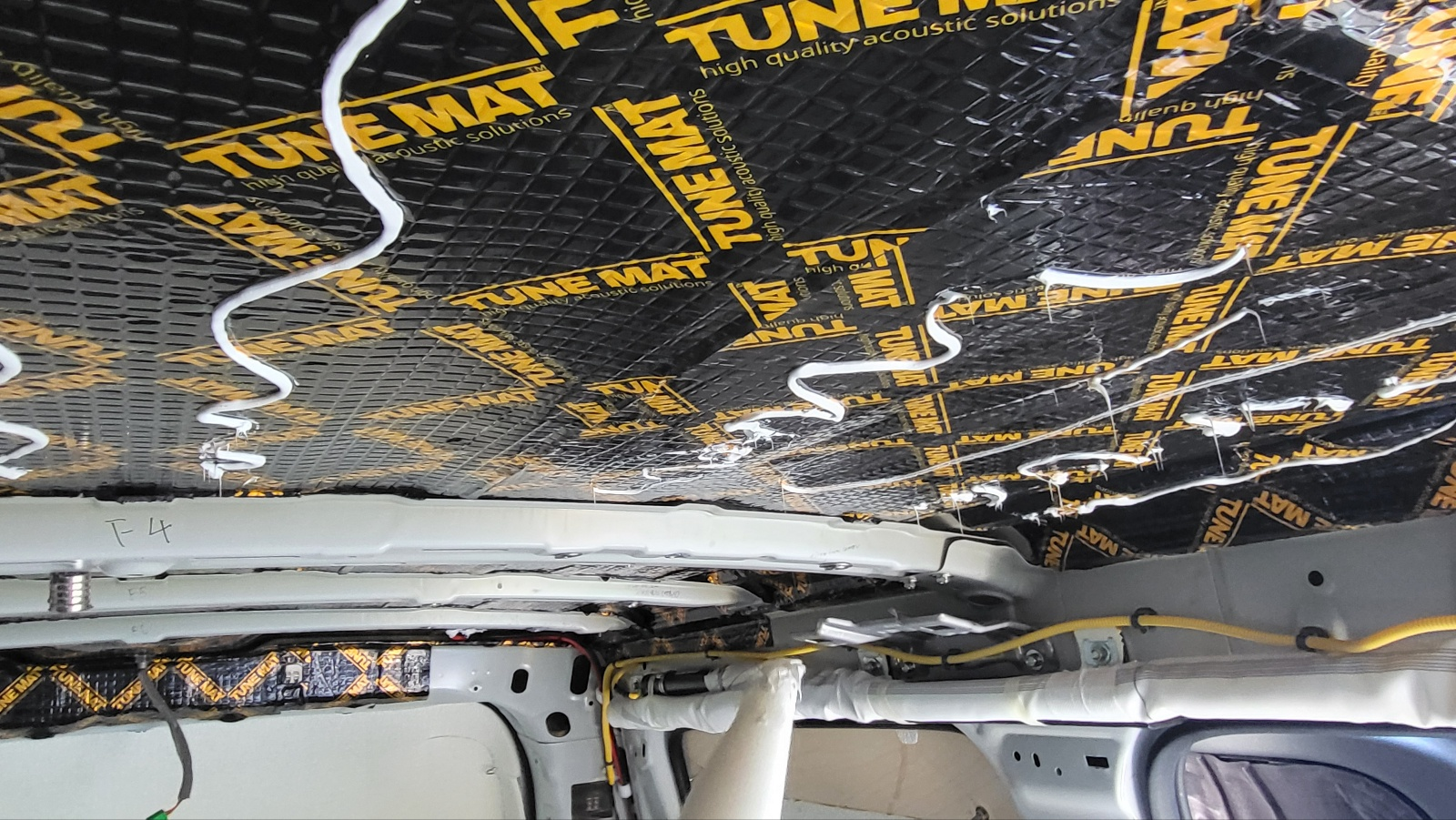 천장 철판에 방진매트 부착(상세보기 : https://igotit.tistory.com/5335 ) 해둔 상태에서 단열, 방음 작업 진행.