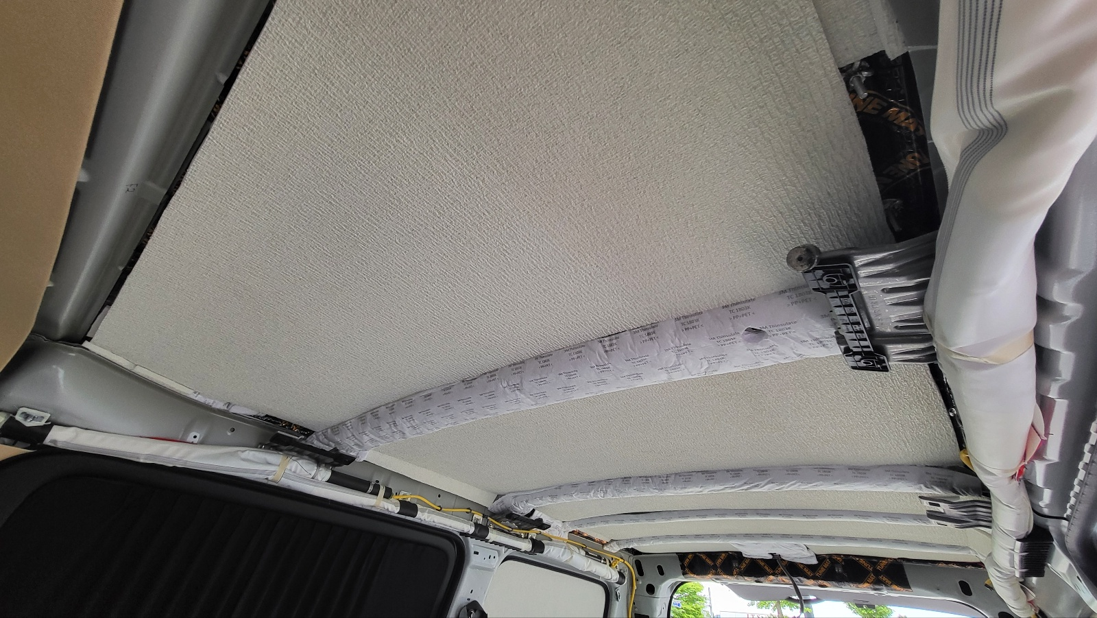 운전석 뒤쪽 지붕 철판의 오목한 부분에는 5mm 두께 단열벽지 먼저 부착 하고,