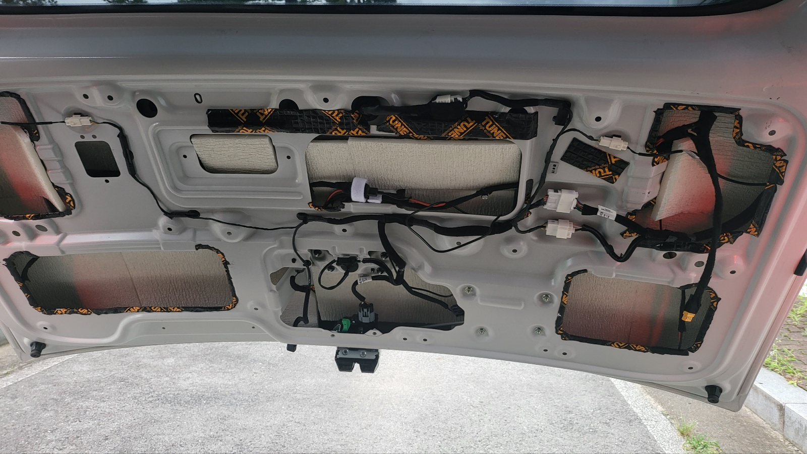 테일게이트의 전선 주변 금속 경계 모서리 부분에도 방진매트 부착해둠.