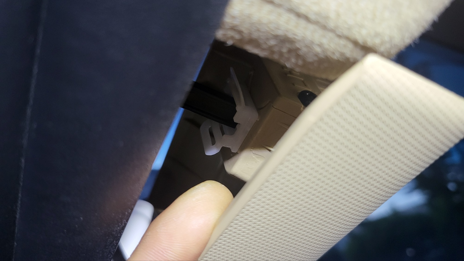 백색 플라스틱 부분을 슬라이딩 시켜 빼낸다.