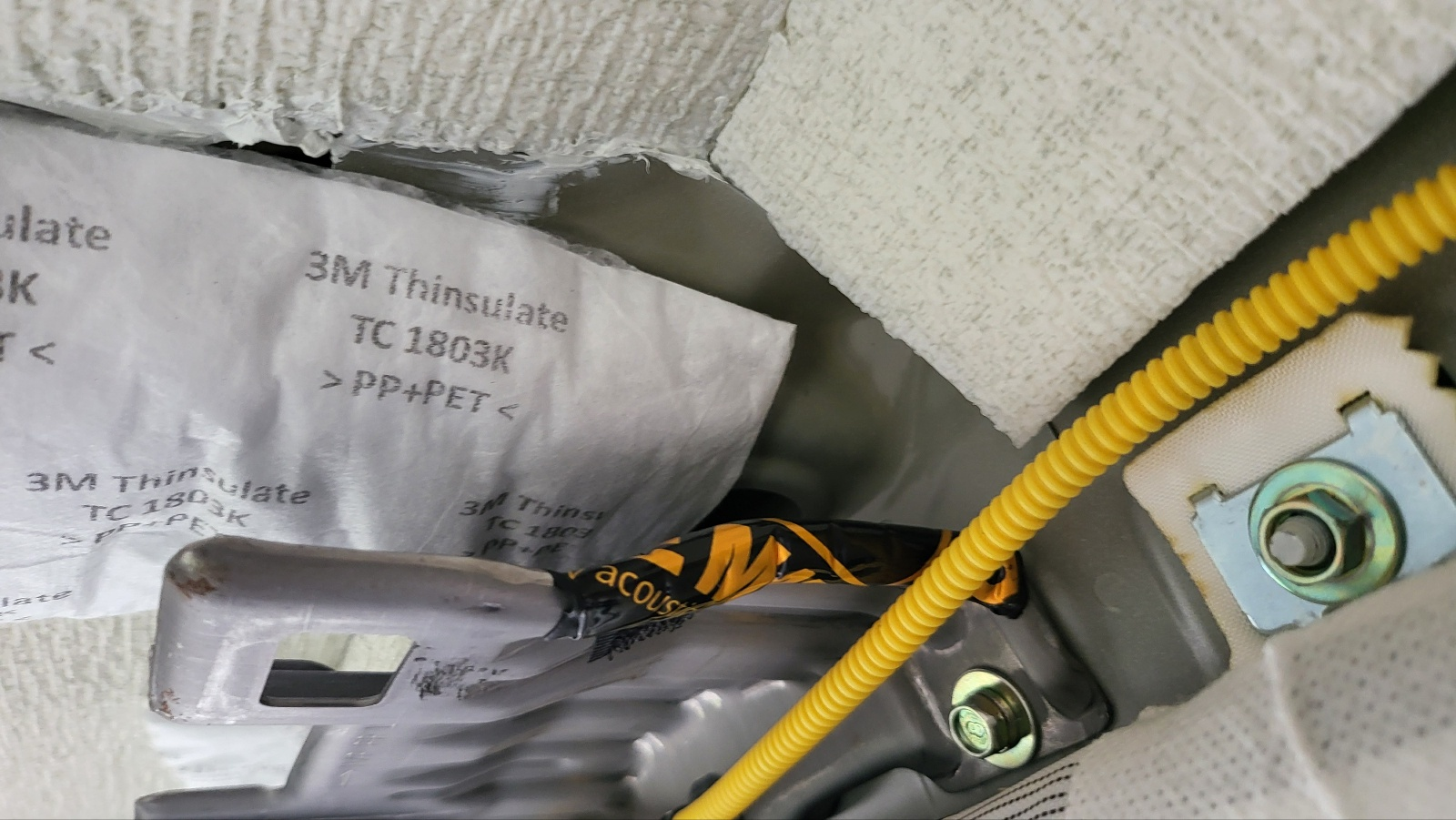 - 아래 회색 철판 위로 전선이 걸쳐지게 되는데, 이 철판의 경계가 매우 날카롭다. 전선 피복이 저 금속 경계에서 쓸릴 수 있기 때문에 경계 부분노출되지 않게 하는 용도로 경계에만 방진매트 부착하고, 또한 전선이 고정 될 수 있도록 벨크로 처리도 해준다.