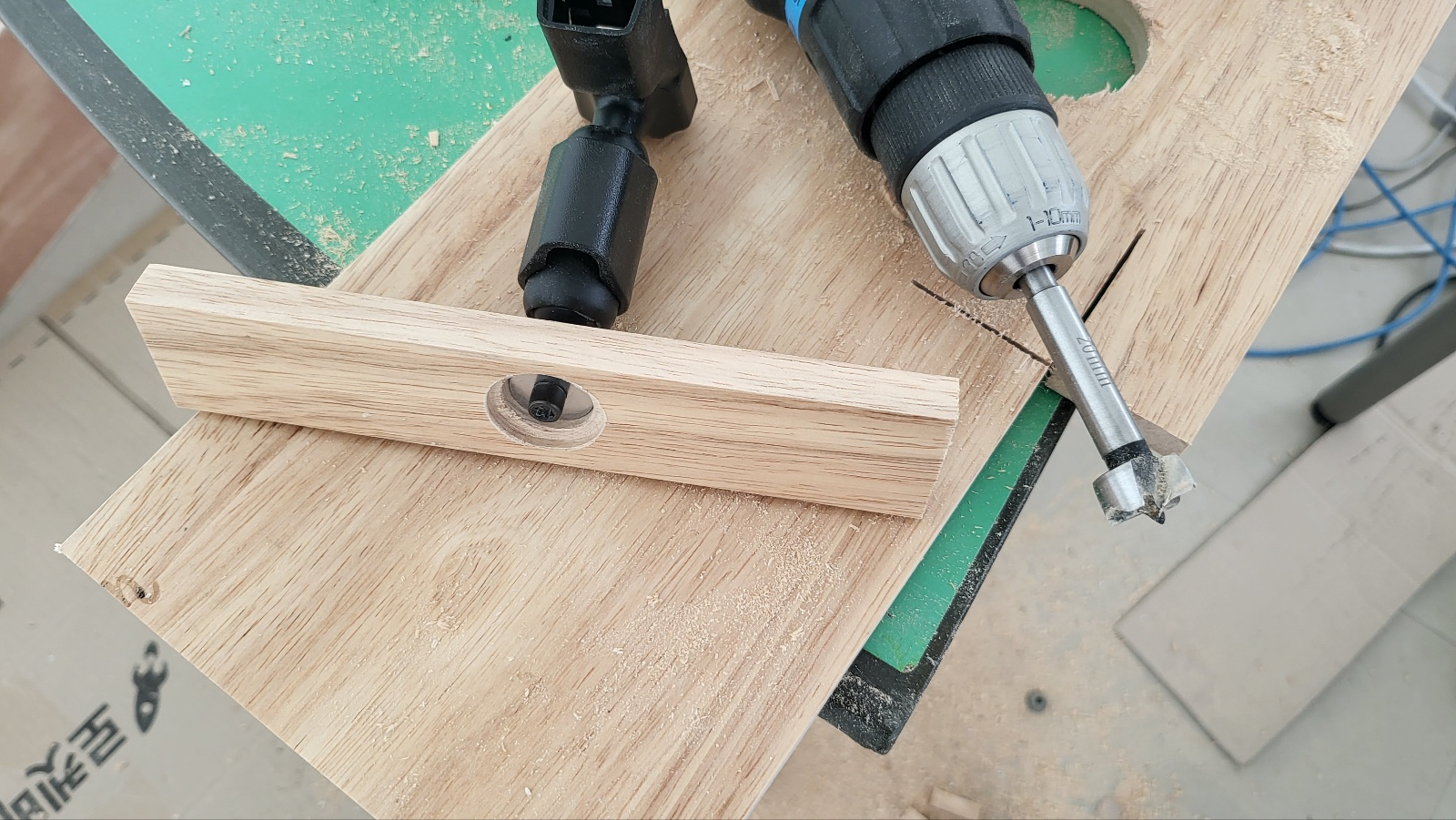- 보링비트 (지름 20mm ) 로 와셔 안착되게 구멍 가공했음.