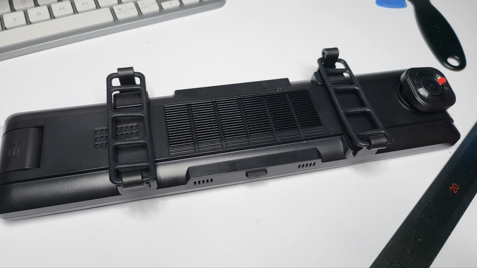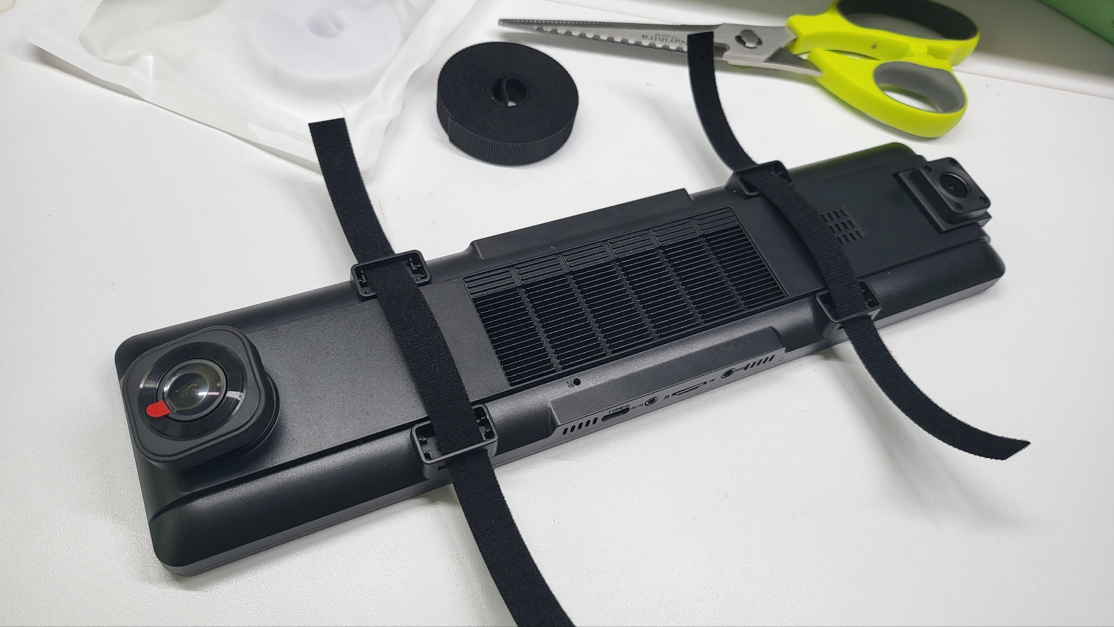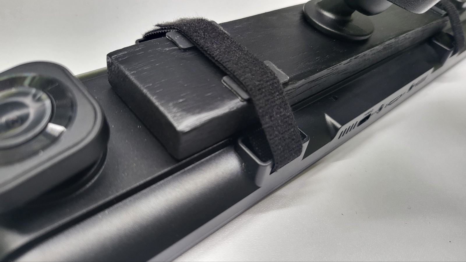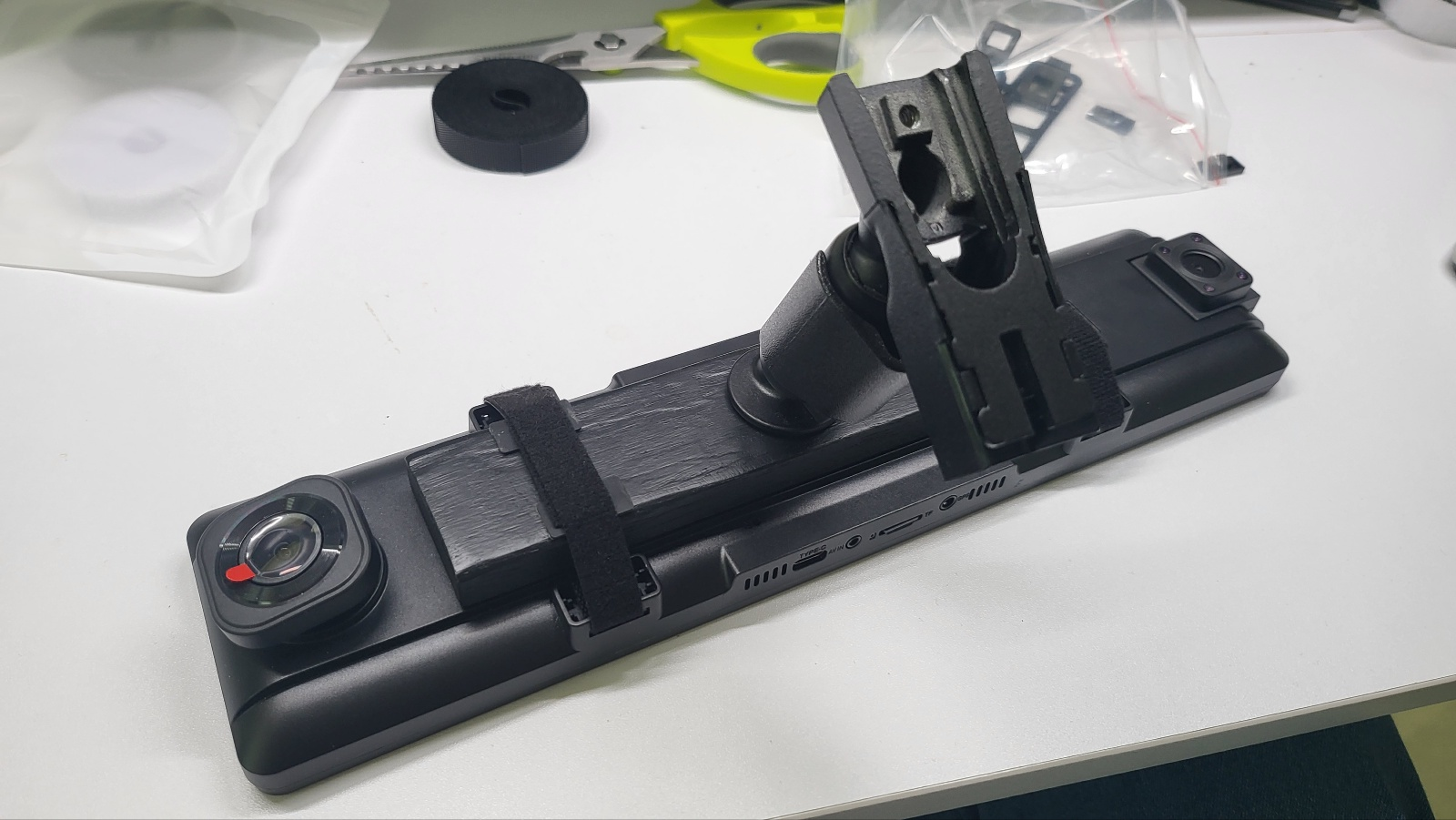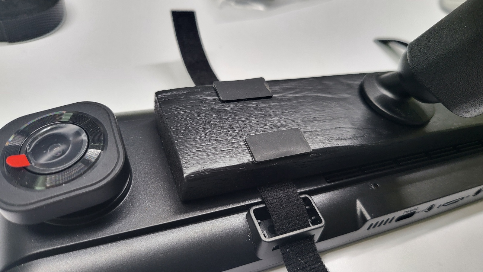 - 제품에서 제공되는 고정 방식은 아래 사진같은 고무재질로 룸미러에 감싸서 고정하는 방식인데 벨크로 고정 방식으로 개조.
