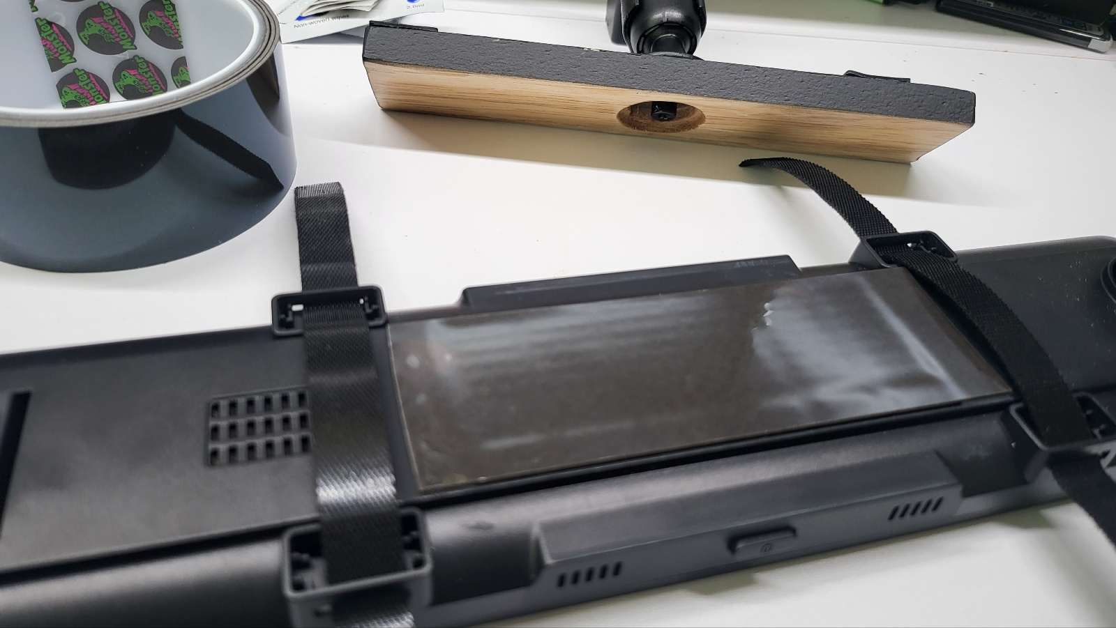 - 위 상태에서도 튼튼하게 고정되긴 하나 차량이 심하게 흔들리는 경우 좌우 방향으로 미끄러질 듯하다. 실리콘 양면 접착 테이프 중에서 폭 4cm , 두께 1mm 인 몬스터 블랙겔 넓게 부착.