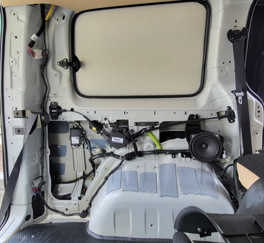 트림 전체 탈거 하여 뒤에서 보면 플라스틱을 녹여서 융착 시켜뒀다.