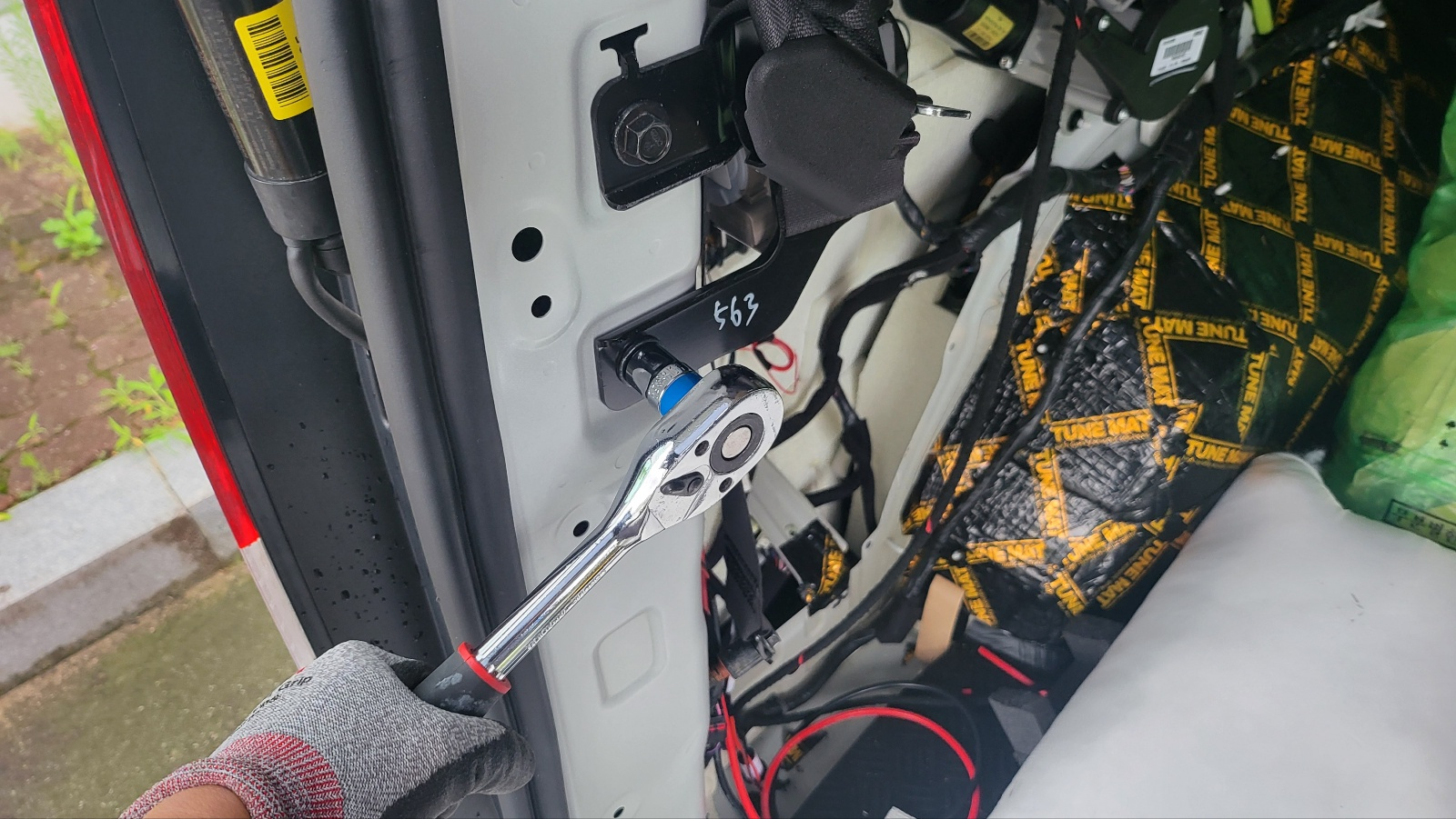 - 복스알 라쳇 렌치 이용. 체중 실어 올라타야 풀릴 정도로 강하게 체결되어있음.