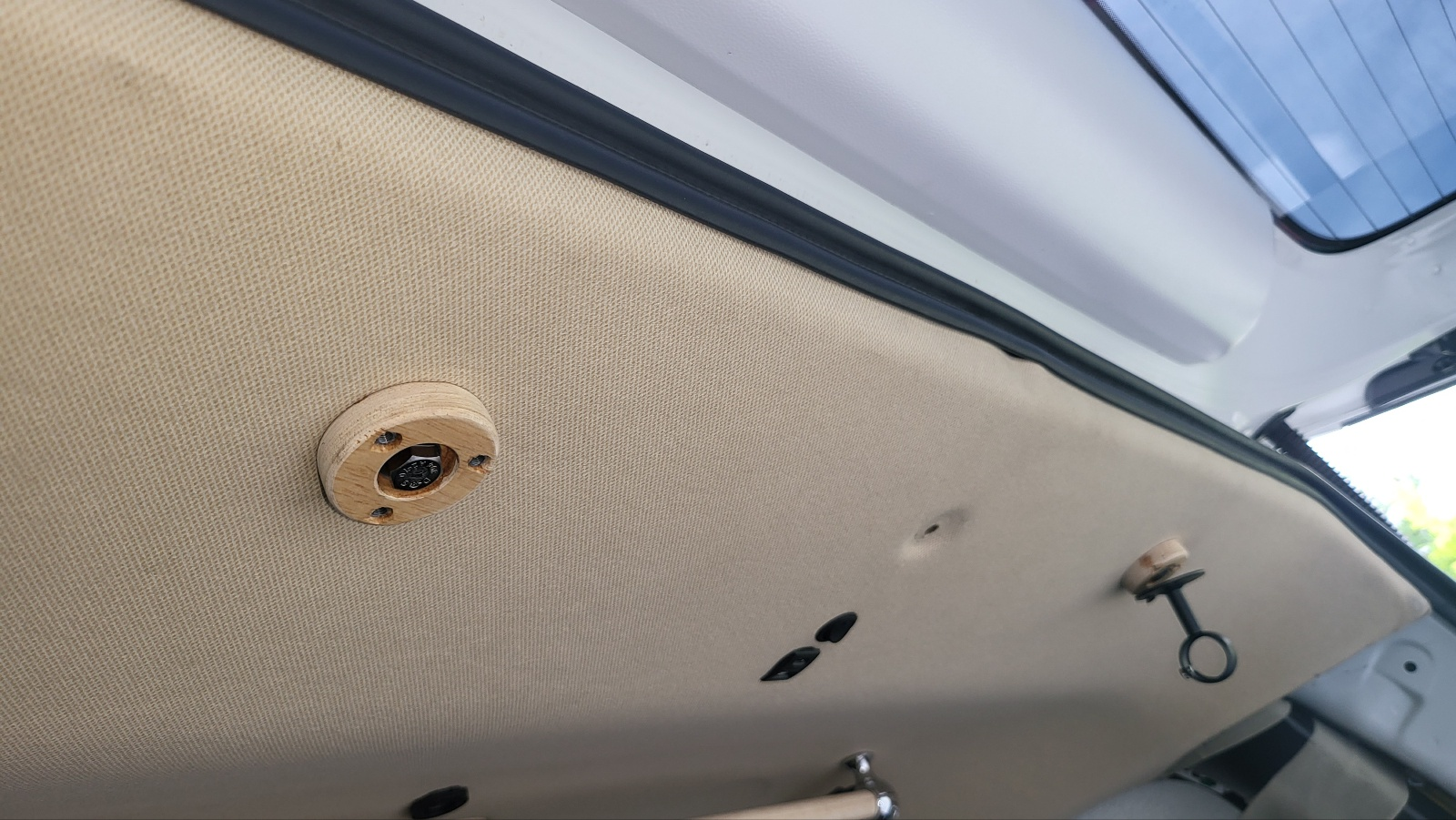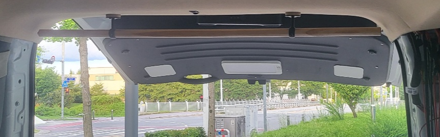 차량 내부 천장에도 세로봉 가로봉 튼튼하게 장착 했다.