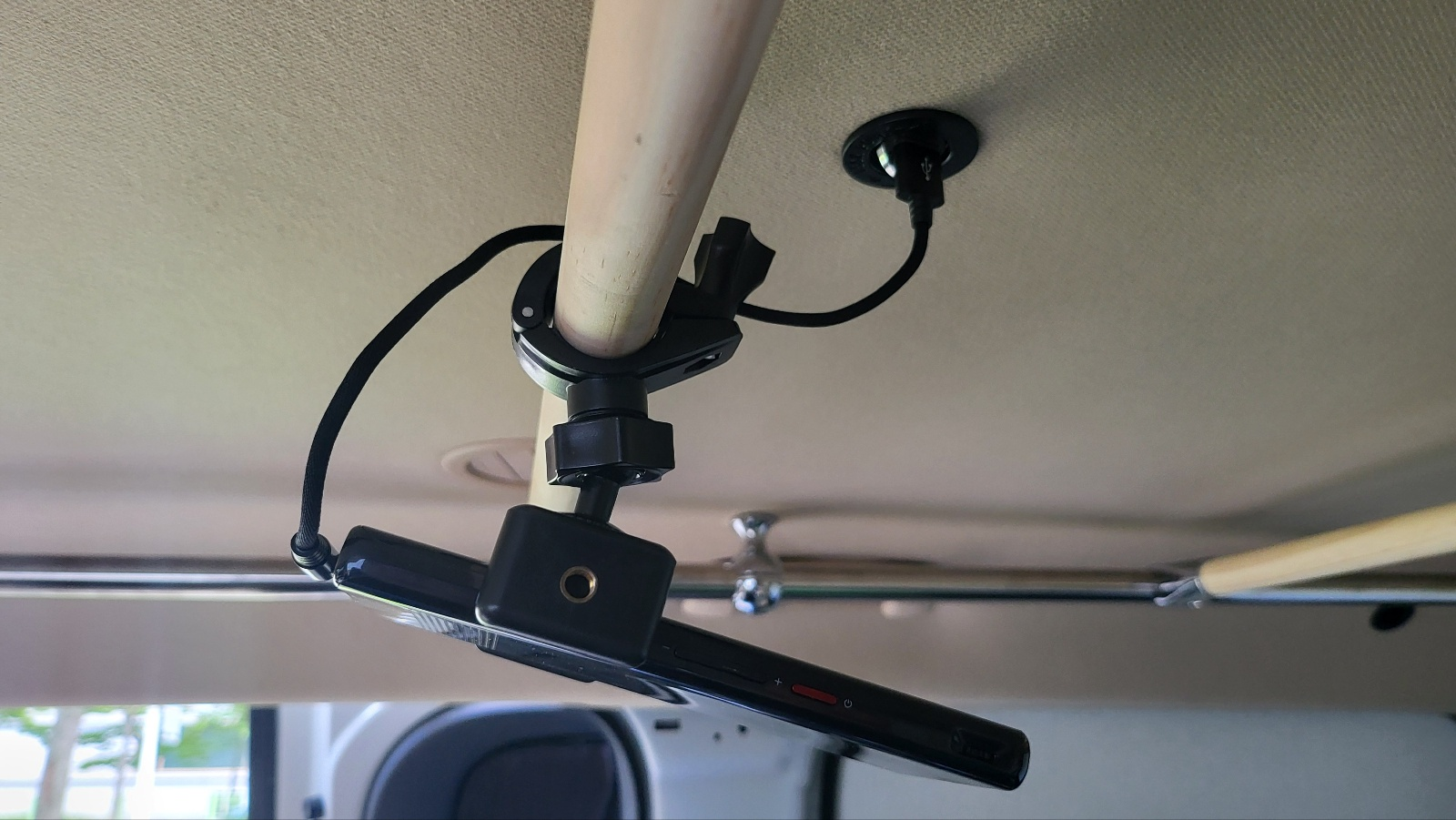전원 공급: 천장에 매립해둔 시거소켓에 USB 충전기 꼽아서 활용 .