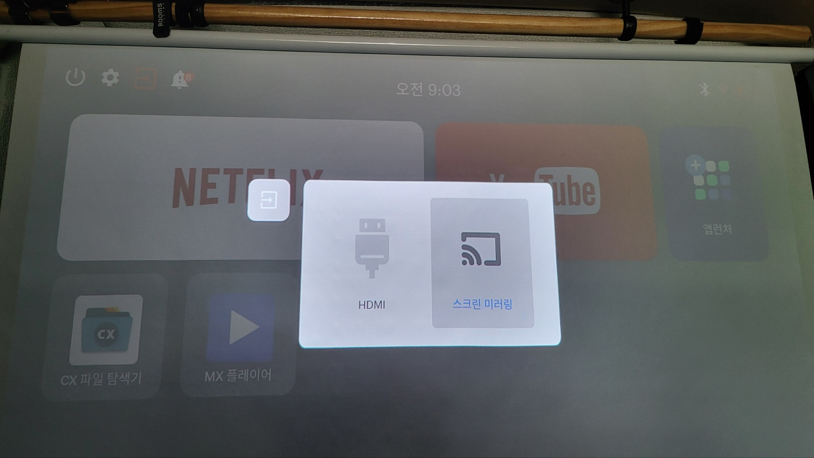프로젝터 홈 화면에서 CX 파일 탐색기 실행