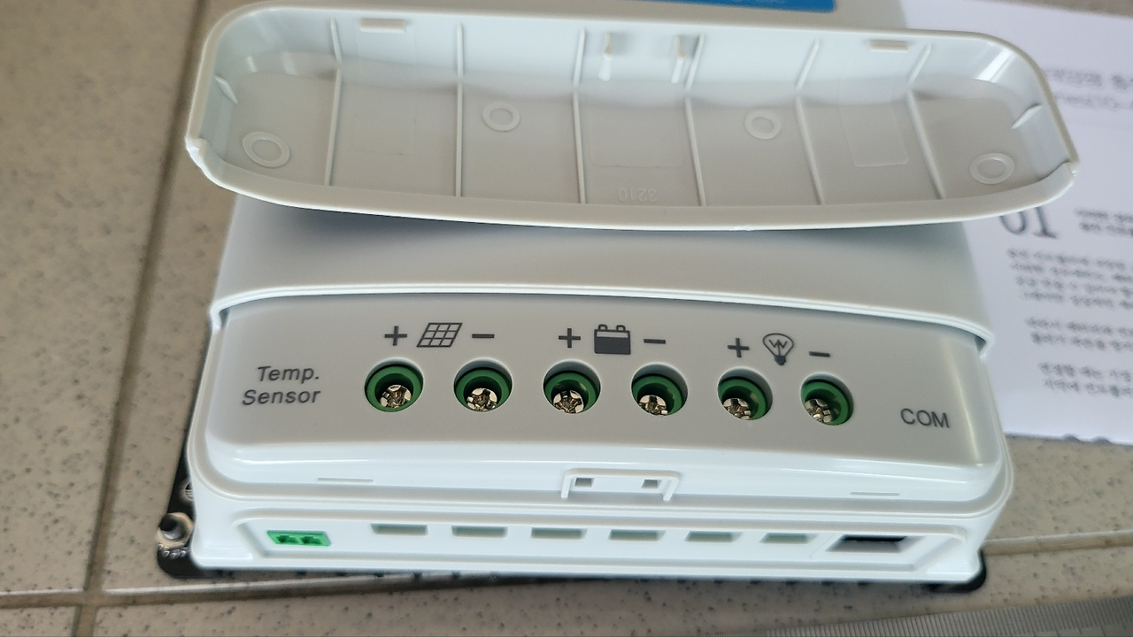 - MPPT 하단 단자대는 인산철 배터리의 (+) 로 연결.