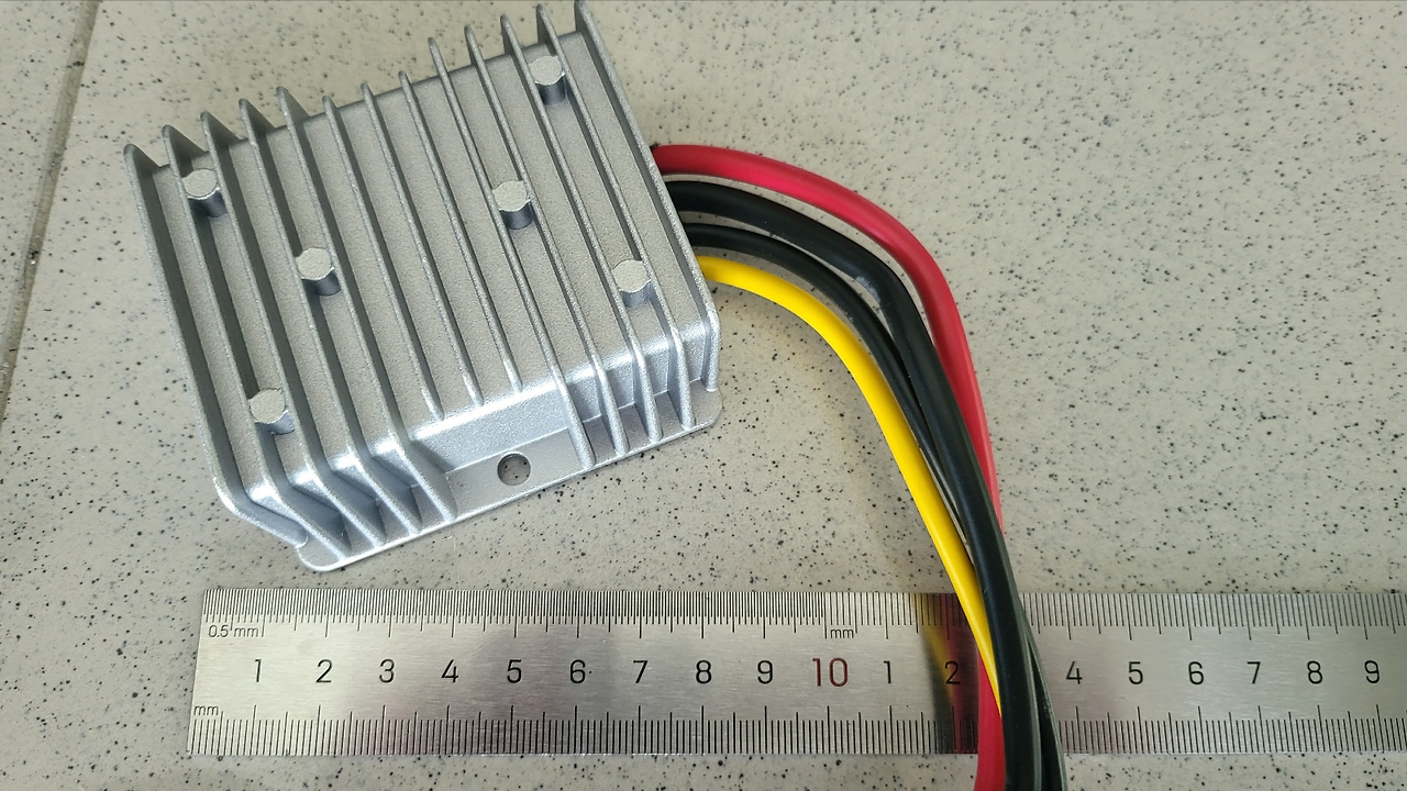 - 붉은색 선 : 차량 배터리 (+) 연결 , 노랑색 선 : 24V 출력. 검정색 2개는 (-).