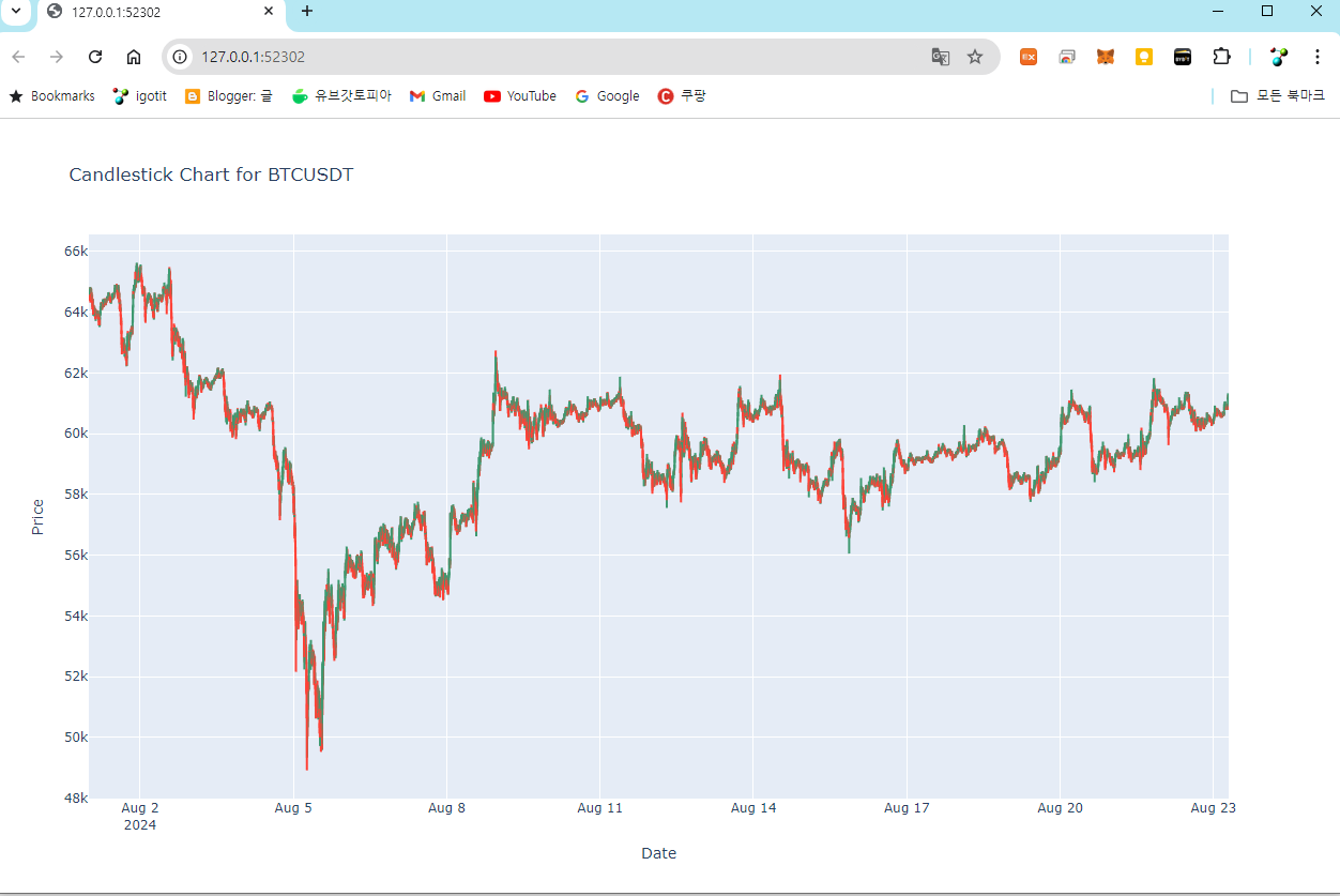 - go.Figure와 go.Candlestick로 캔들 차트를 생성.