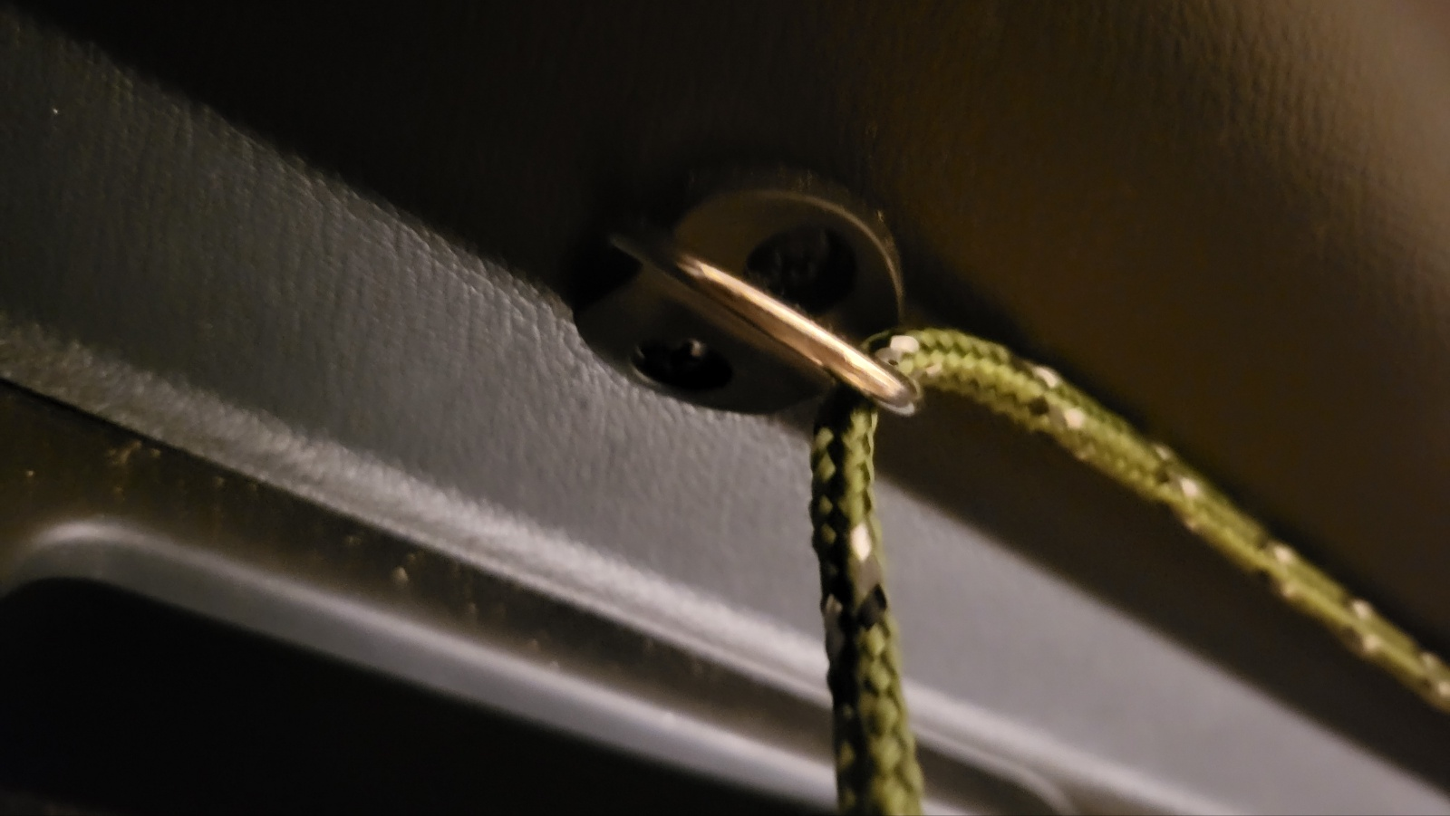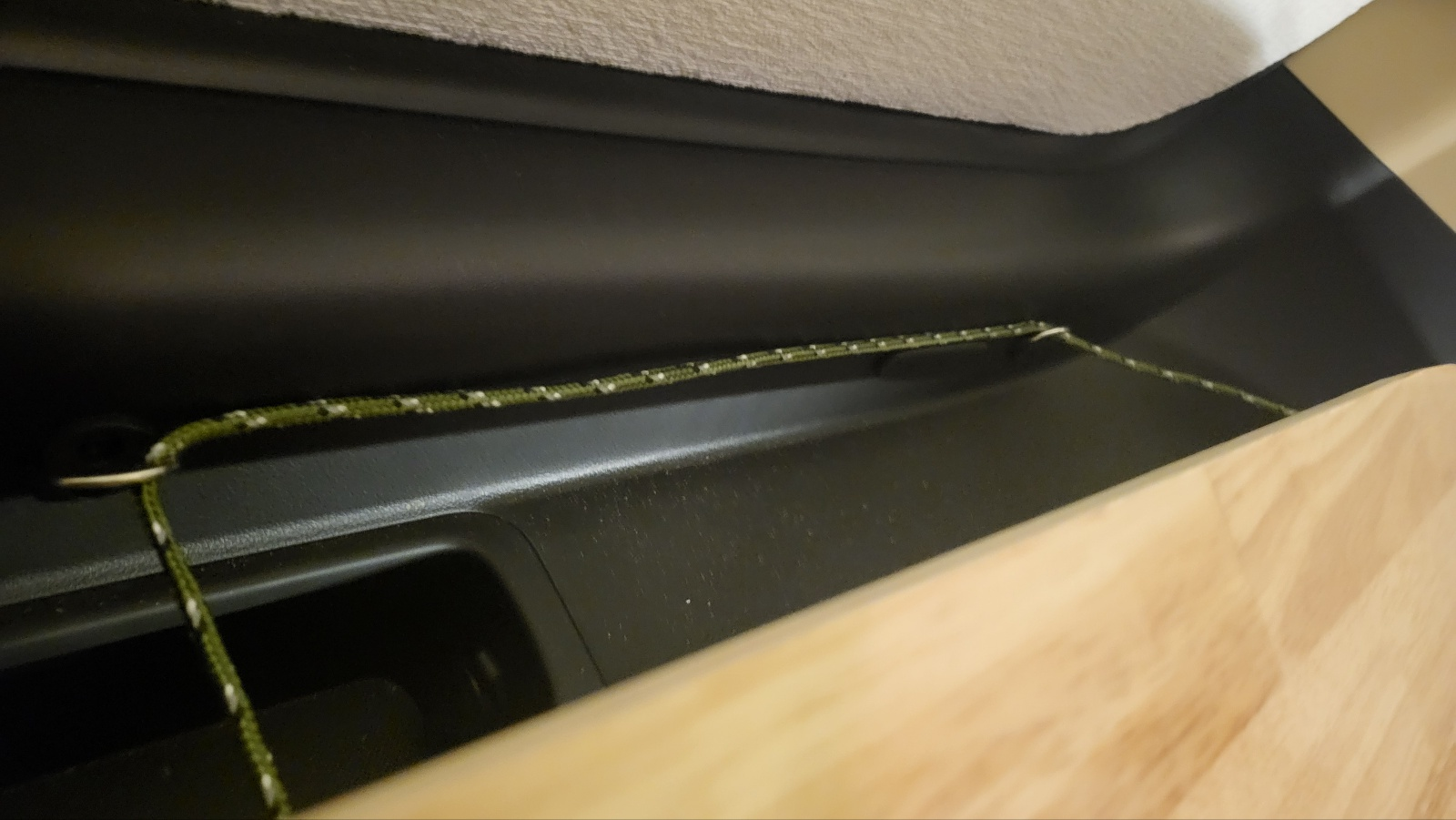 - 원래는 측면 트림에 나사못으로 고정하는 방식이나, 로프 이용하여 고정 가능하게 하여 분해 재조립 용이하게 함.