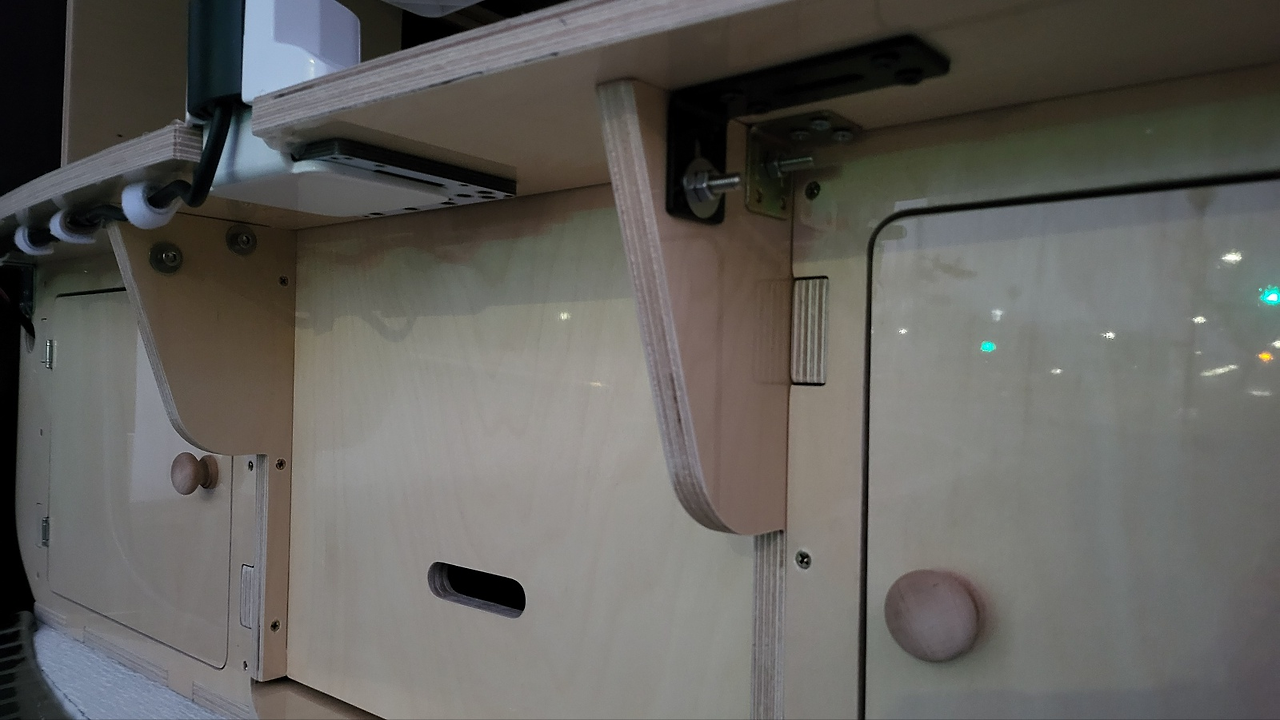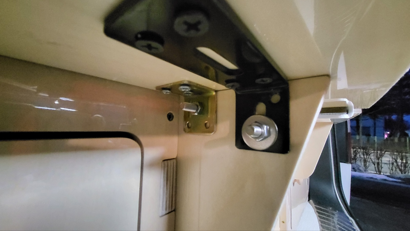 개요 - 스타리아 침상키트 측면장(조수석 측 ) 에 슬라이딩 선반 장착 작업 상세 장착할 곳 슬라이딩 선반 펼친 상태에서 나사못 2개 박음 옆에도 동일하게 작업하여 2개 장착