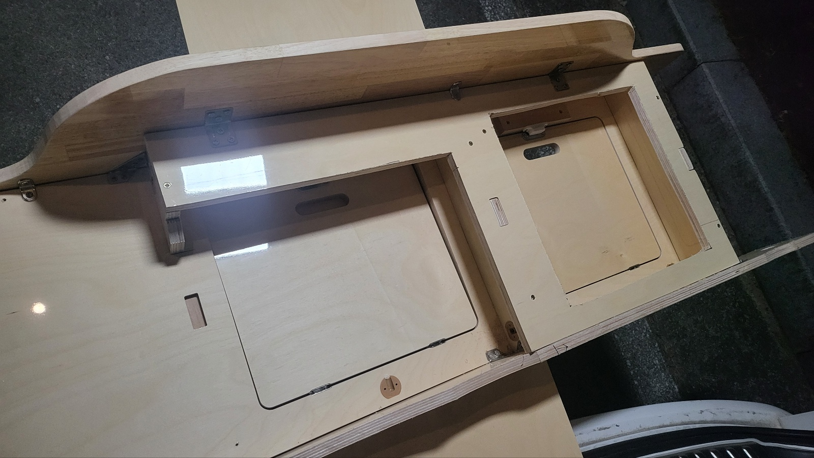- 아래 조립도면은 바닥 부분이며, 이것 외에 좌, 우 측면장 도 같이 구매하고 트렁크 뒤로 슬라이딩되는 테이블 옵션도 추가.