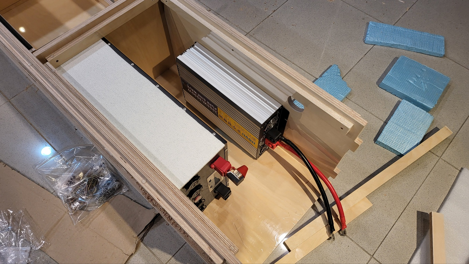 - 미리 구입해뒀던 인산철 배터리(250Ah )와 인버터(3kW) 배치.