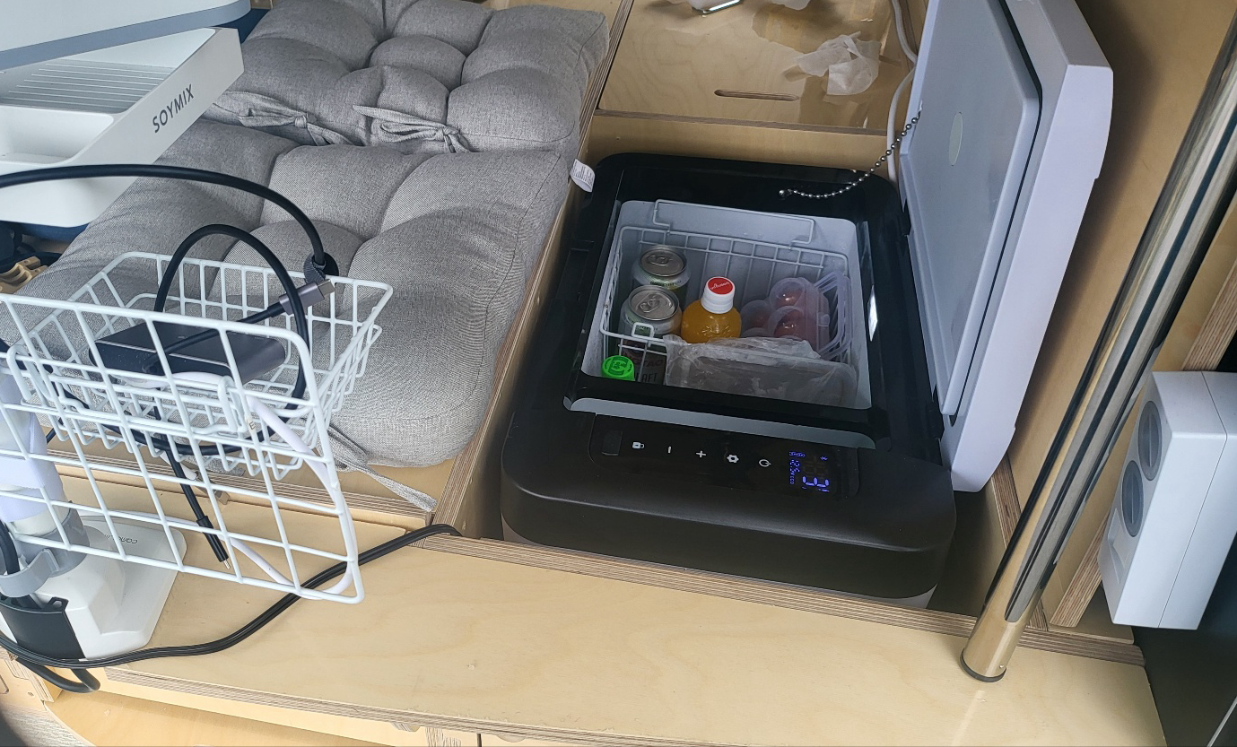 - 리프팅 테이블 제거하고 이 자리에 알피쿨 냉장고 K25 수납했다.