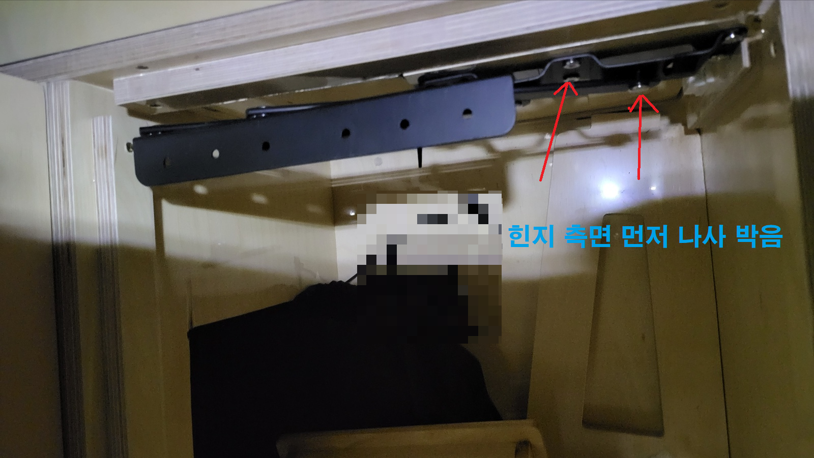 힌지 2개 모두 동일 방식으로 측면 먼저 고정완료