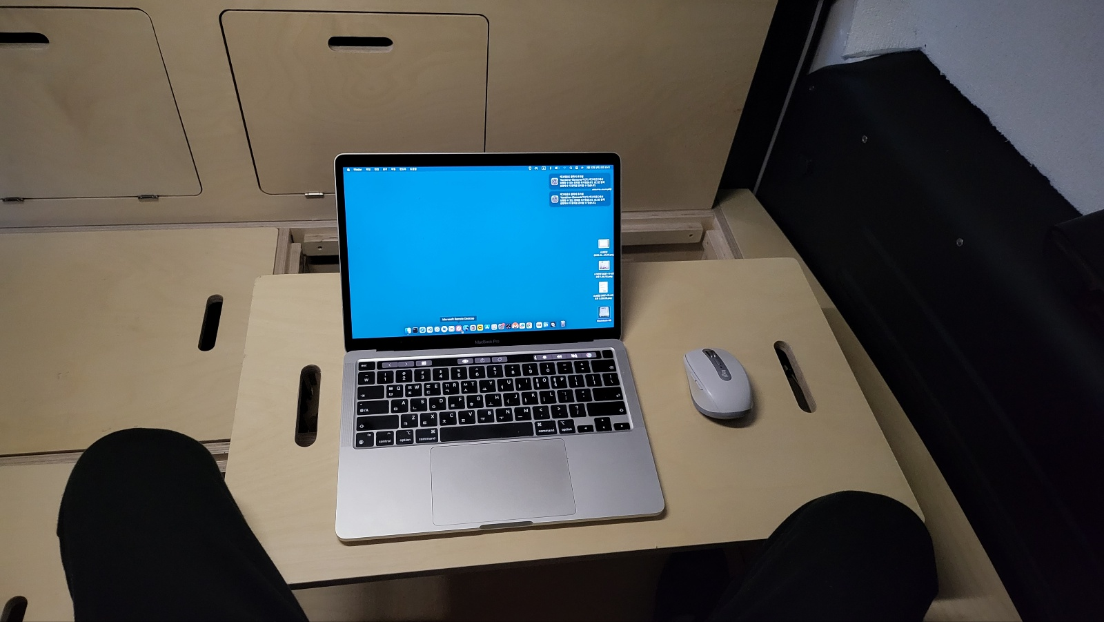 키보드, 마우스만 배치하면 테이블 여유 공간 많이 생김. 차량 내부에서 사용시 무선 블루투스 특히 유용.